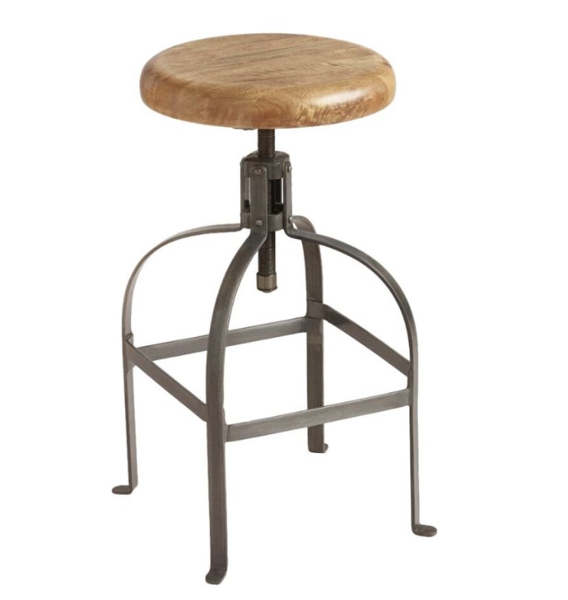Set of 2 World Market Round Wood and Metal Adjustable Swivel Stool