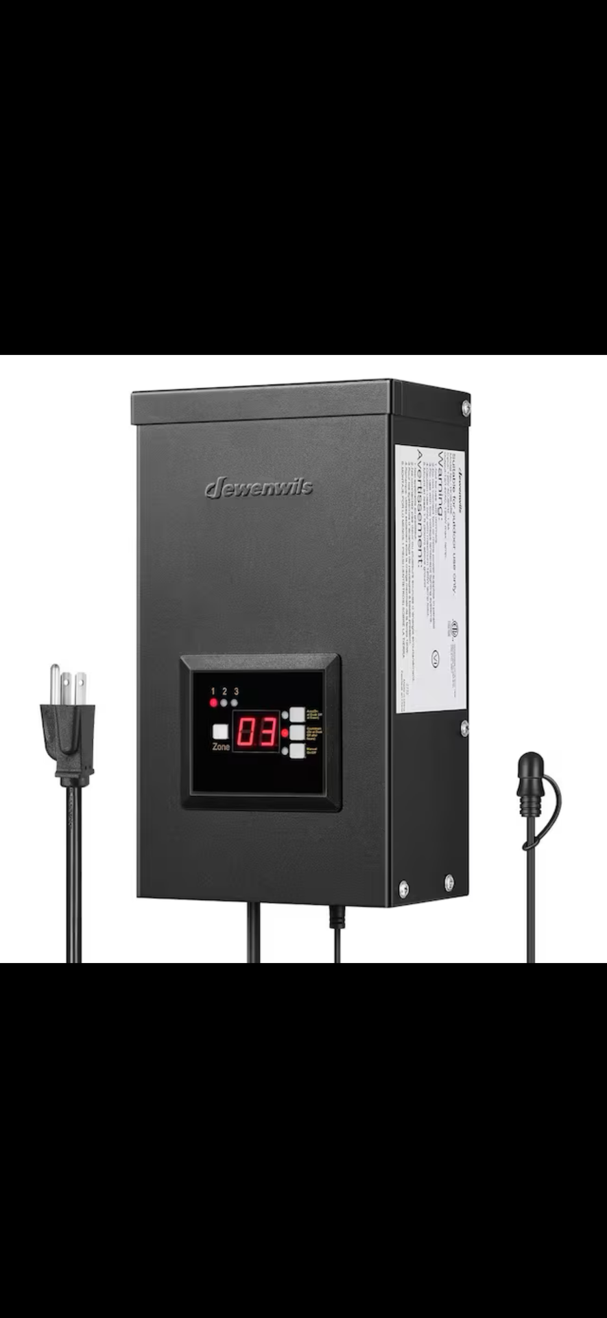 Low Voltage 300-Watt Metal Landscape Lighting Transformer with 3-Zones Control Light Dusk to Dawn Sensor and Timer