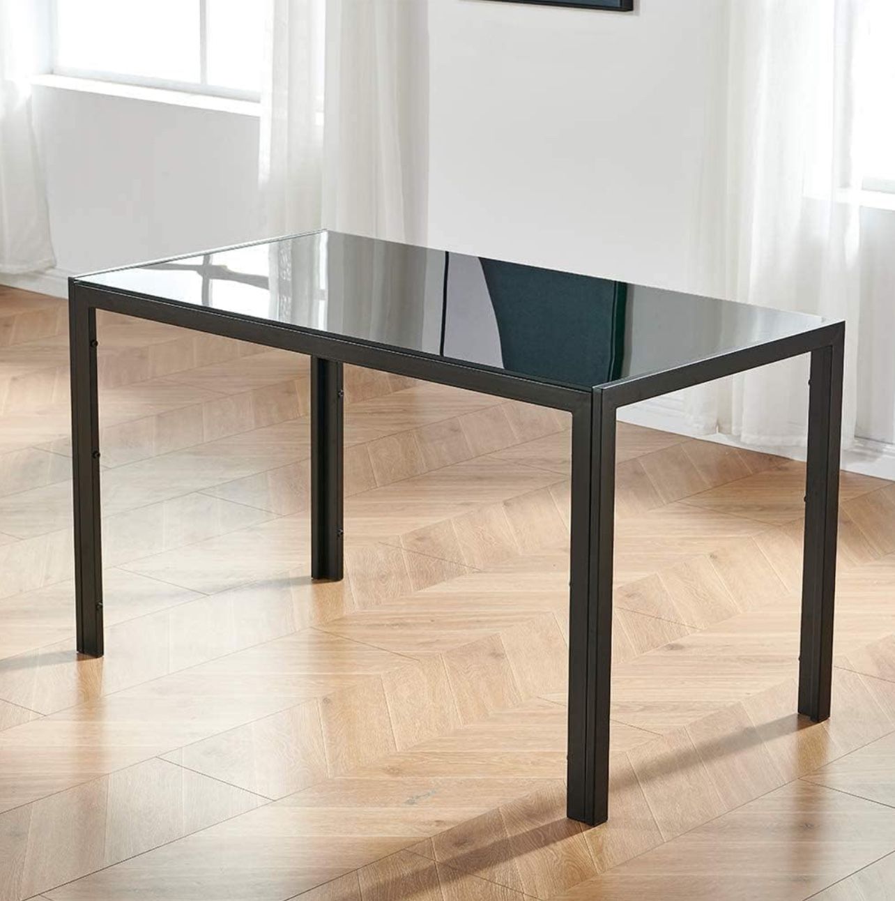 Rectangular with Metal Legs for 4 Persons Transparent Glass Top Kitchen Dining Table, 45.2", Black