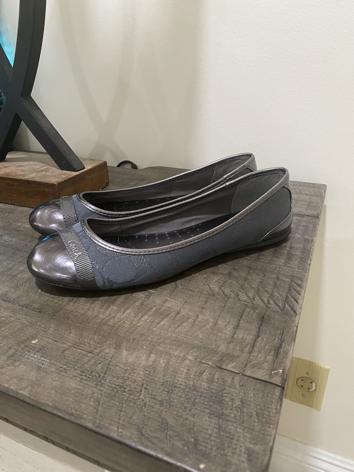 Coach Ballerina Flats Gray Excellent used condition Size 7.5 Ship within 1 business day !! Please don’t forget to follow me and check out all my other items. I have many items to post and will be trying to add daily. Bundle items to save with shipping ! Thank you!