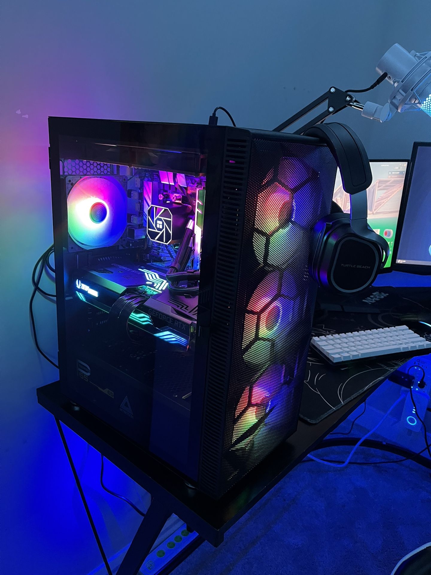 High performance gaming PC built for smooth 1080p/1440p gameplay Perfect for esports, AAA titles, streaming, and content creation. ✅ Specs • GPU: NVIDIA GeForce RTX 3070 • CPU: Intel Core i5-9400 • RAM: 32GB DDR4 • Storage: 1TB SSD • OS: Windows 11 is • PSU: 650W • Cooling: RGB fans + premium CPU liquid cooler