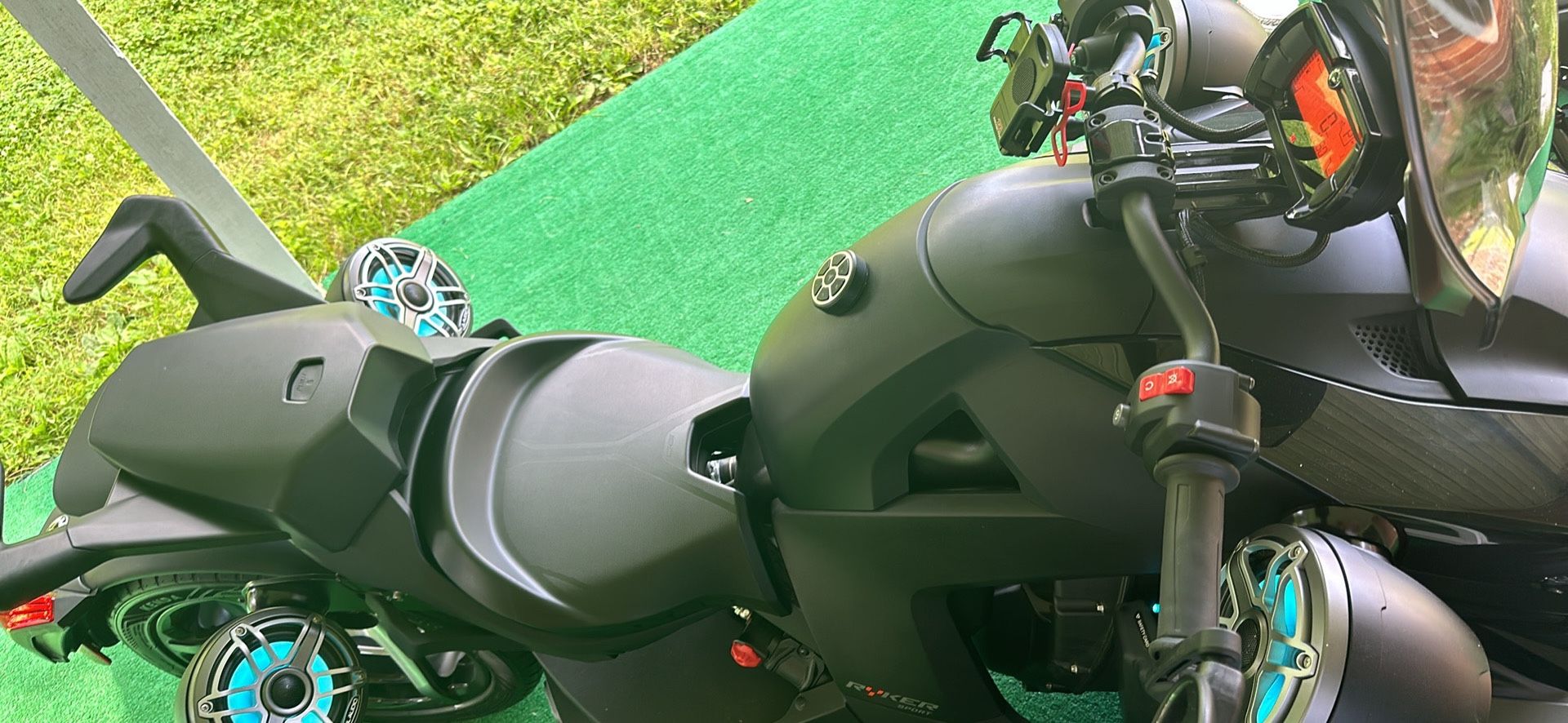 2022 can am Ryker 900 with passenger seat. 4 JL audio spears with amp and lights all under the bike and on speakers