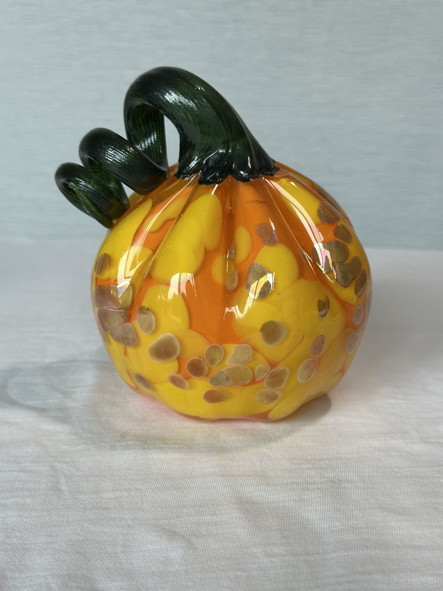 Hand blow glass pumpkin, small gap on back of stem where in connects to pumpkin