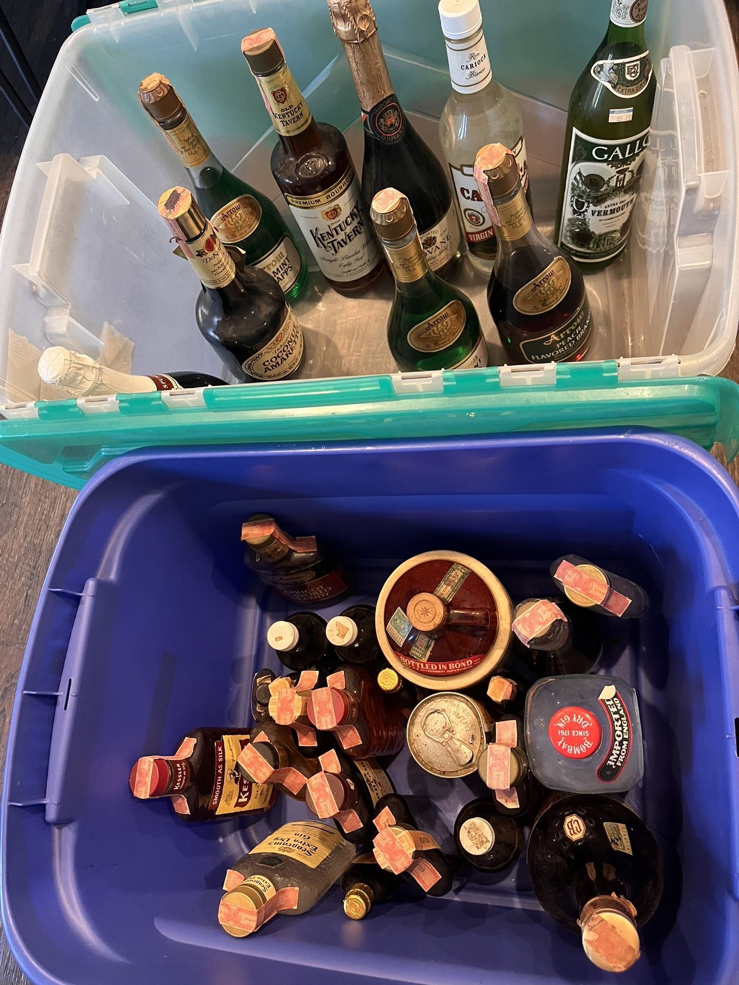 Lot of 31 bottles. Some still have tax seals from the 1970s Estate find. Local pick up only