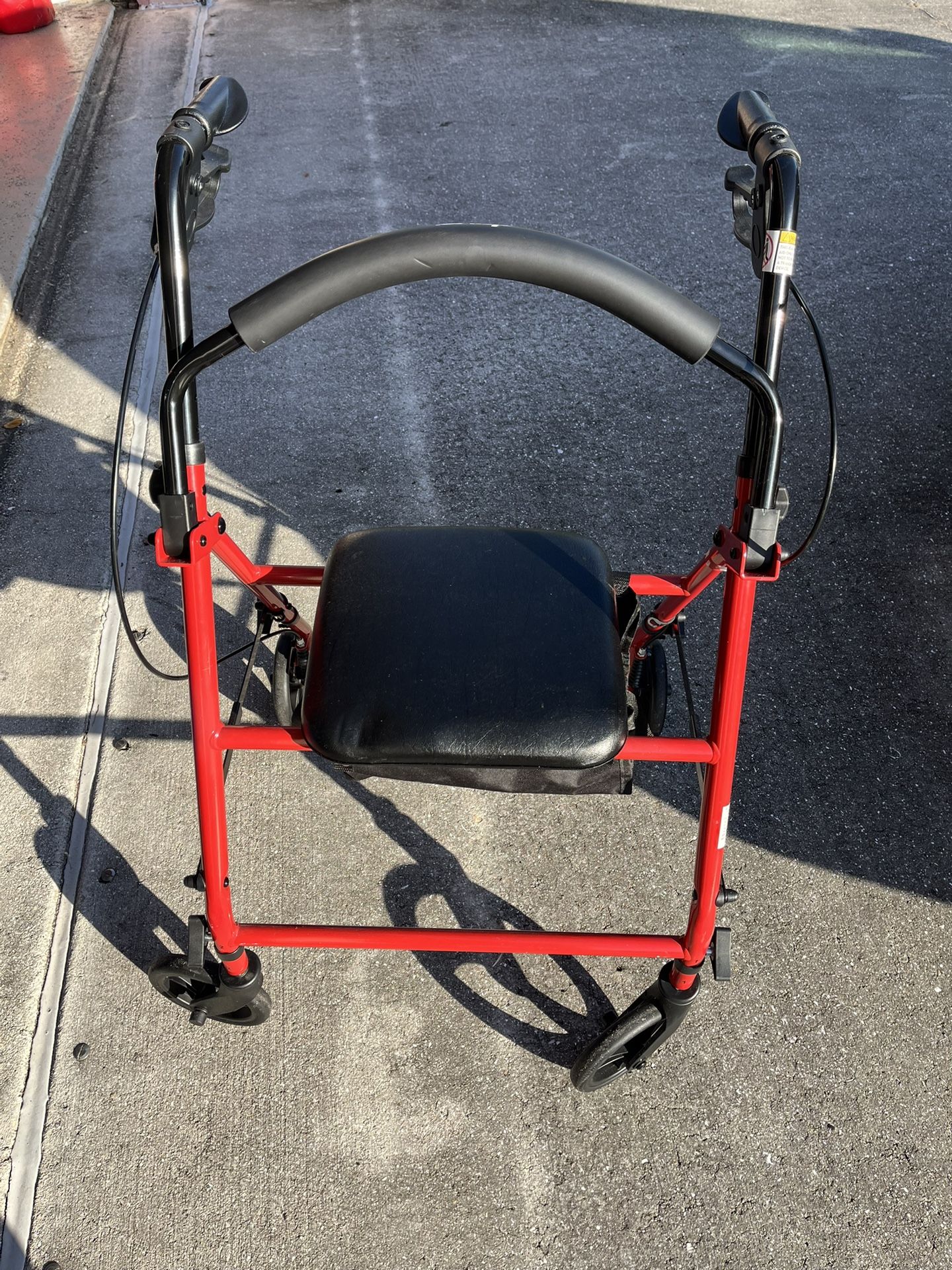 Awesome red drive walker has wheels folds and has storage under seat New condition Pick up in lake worth