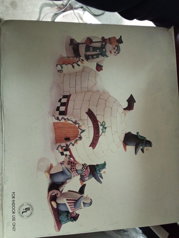 Debbie mumm light up igloo house elderberry home penguin 1999