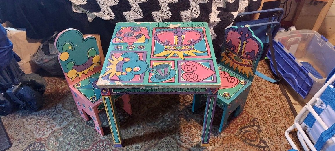 This is a original alice in wonderland kids kids play table used need some T l c best offer takes it Home. Any questions call joe at 727 3 2 6 41 42