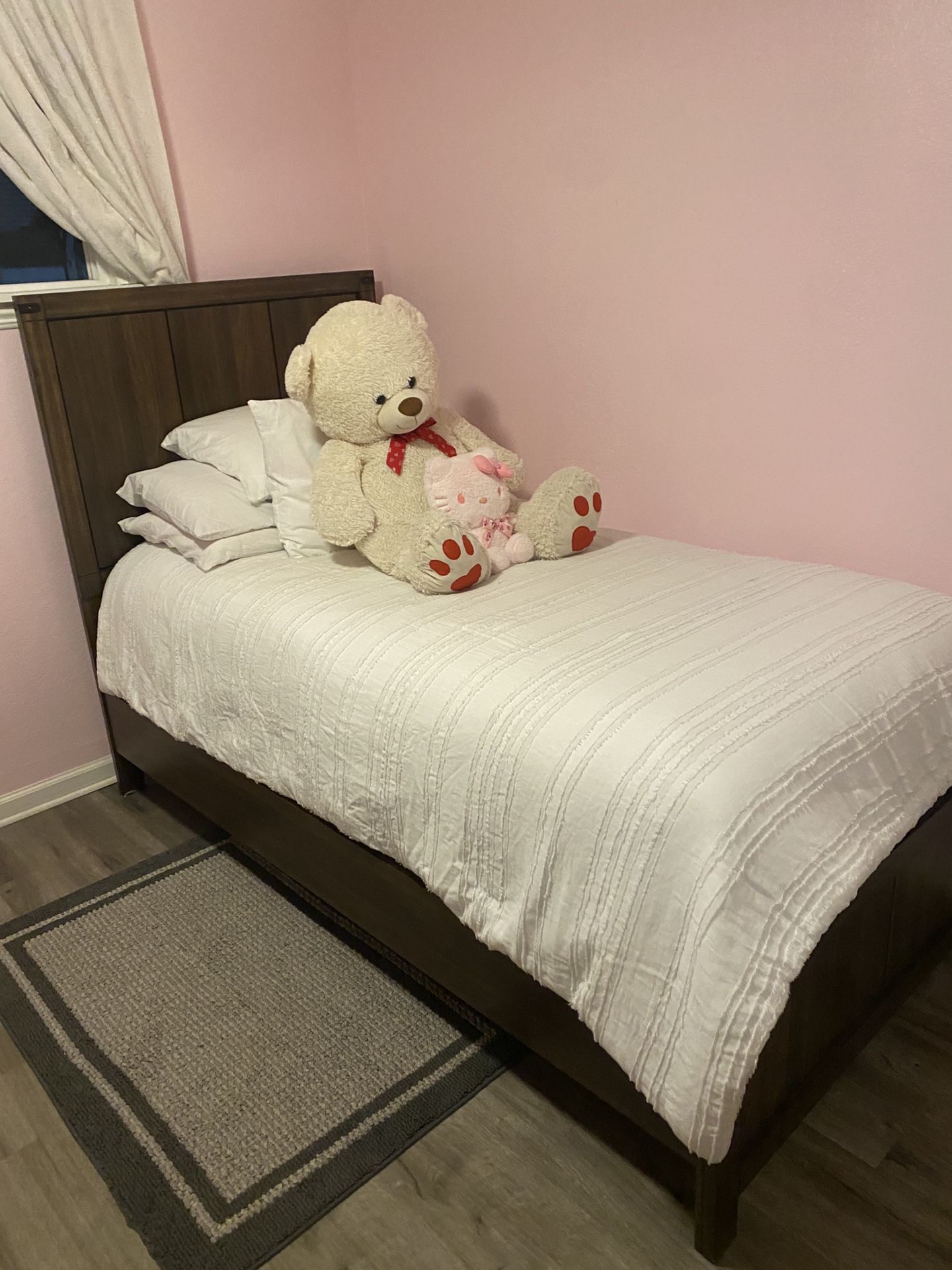 -TWIN Had them for a couple of years and it’s in perfect condition. No rips, scratch’s, chips on the bed frame. Mattress is clean with no stains and rips, mattress was always covered with two thick sheets. Base is also in good condition. There’s nothing wrong with them I just want to get a bigger bed. 270$ obo Price is negotiable
