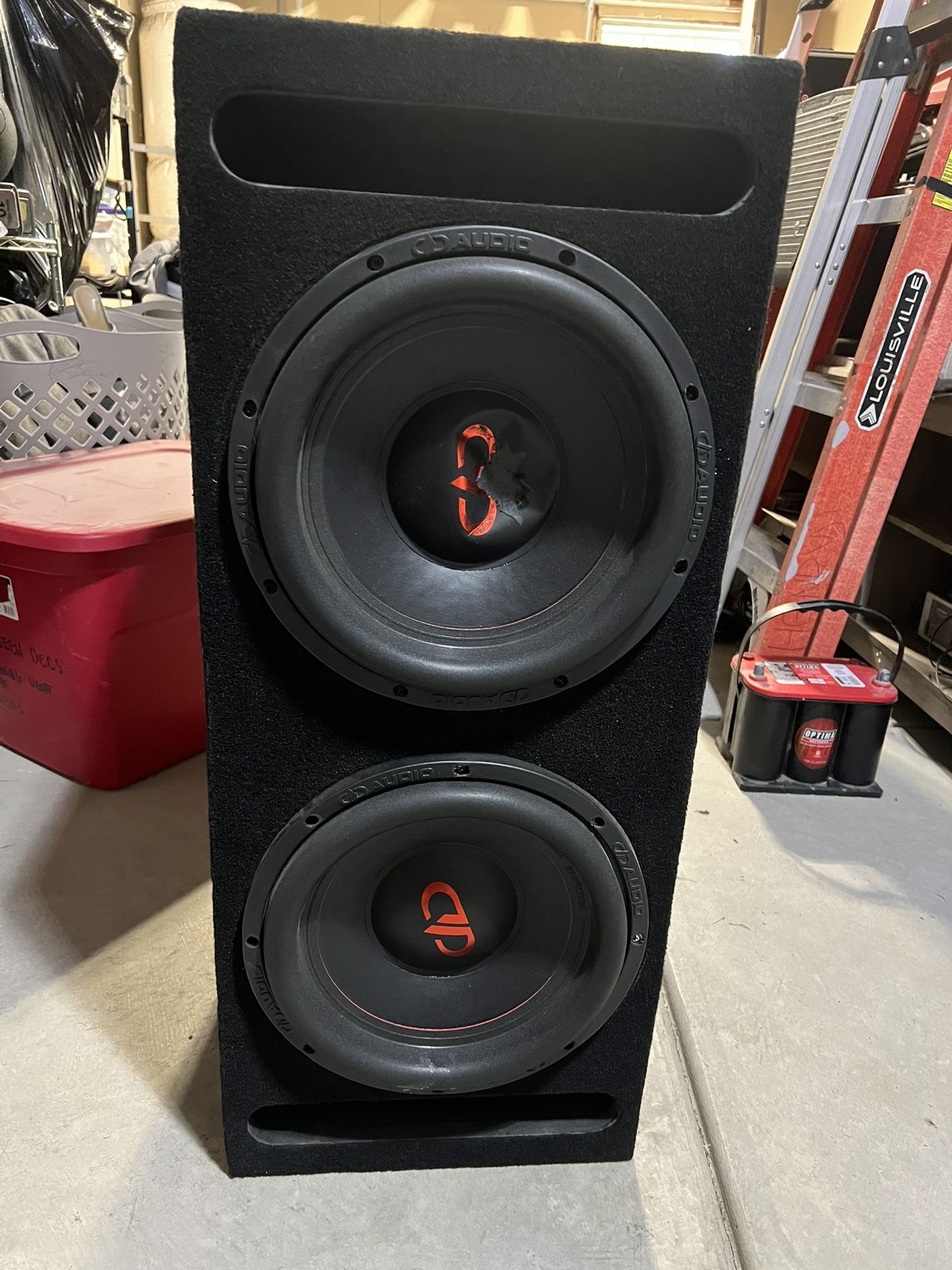 Digital Design 12 Inch Subwoofers. 600 series Redline DVC. In a ported prefabricated box. 200 obo.