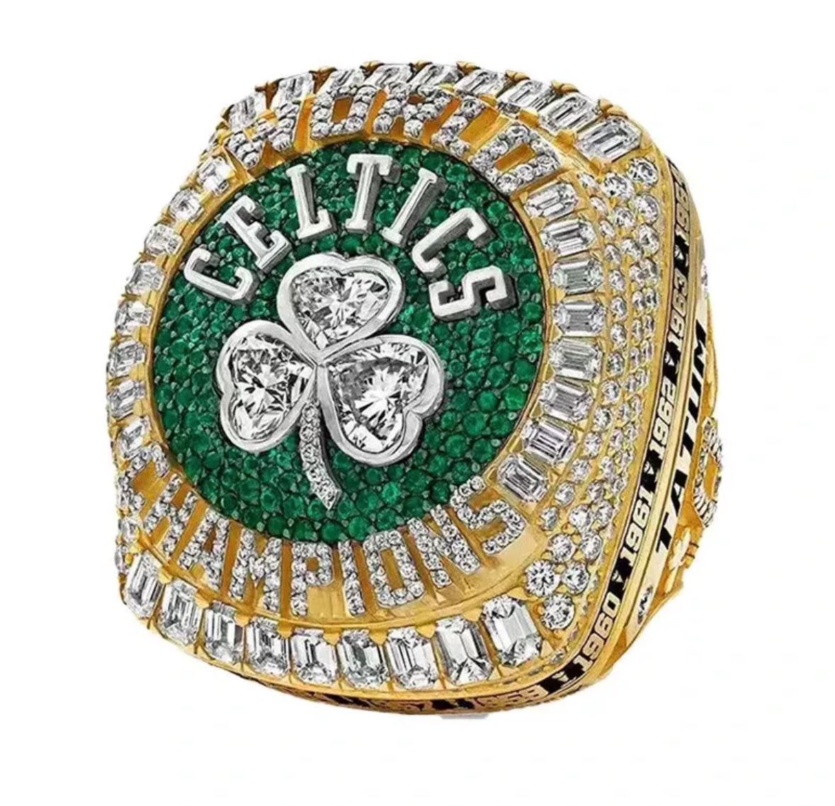 Show off your love for the Boston Celtics with this 2024 TATUM/BROWN Champion Ring. Available in size 11, this ring is the perfect addition to any basketball fan's collection. Featuring the iconic team colors of green and white, this ring is a must-have for any true Celtics fan. Crafted with the highest quality materials, this ring is built to last and is sure to become a cherished piece for years to come. Whether you're heading to the arena or just showing off your team spirit, this Boston Celtics Champion Ring is the perfect accessory. Display box includes.