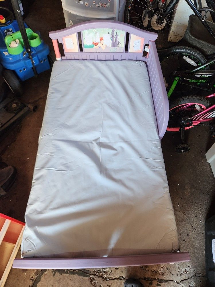 Just upgraded daughters bed to a twin. Slightly used. She put stickers and it tore off the princess part.