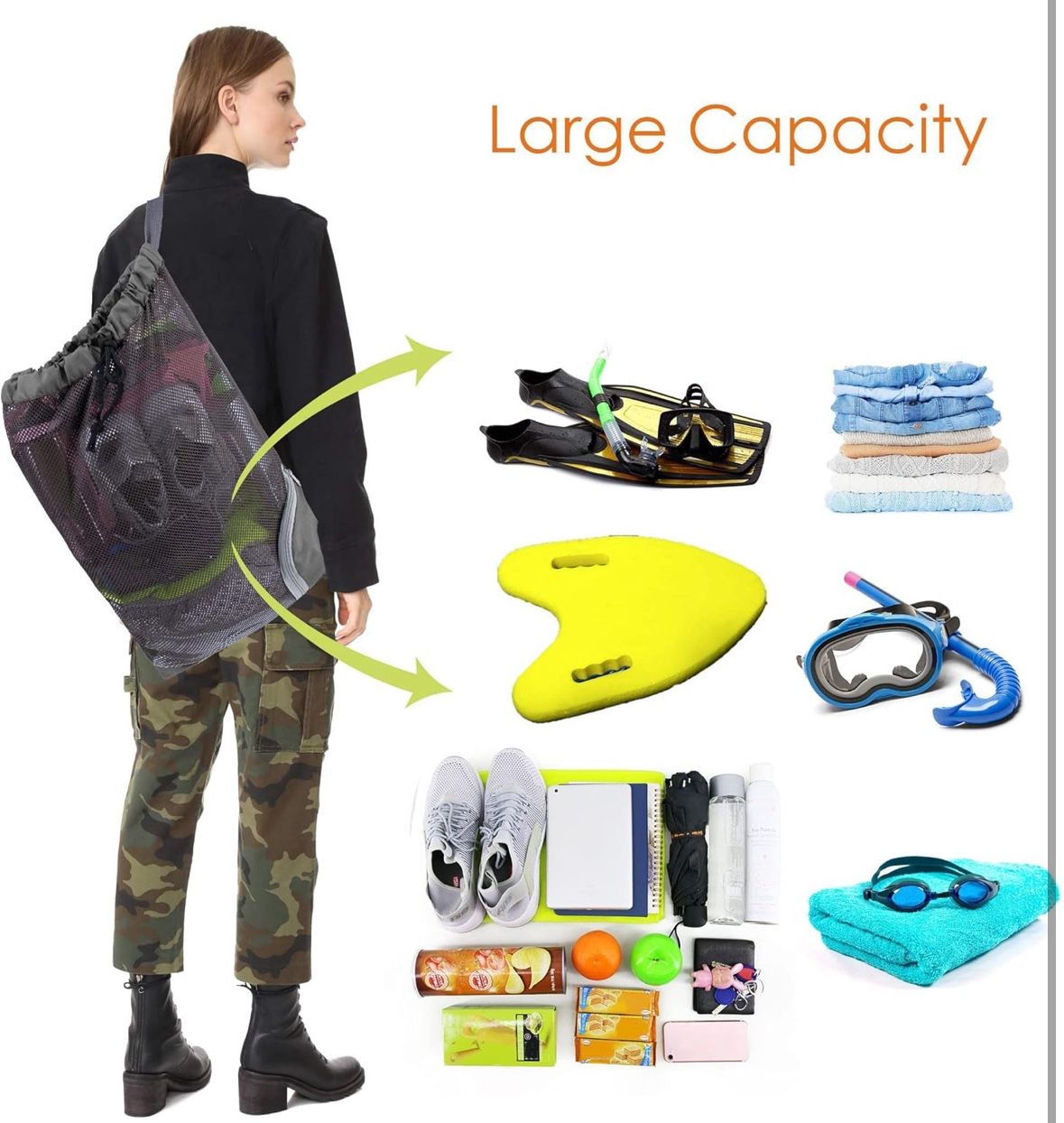 BeeGreen Mesh Drawstring Bag Swim Backpack for Beach Pool Sports Gym Draw String Cinch Bags for Swimming Soccer Basketball Gear Grey