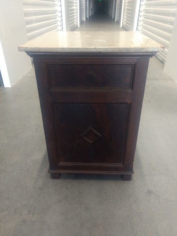 1940s lamp table 20 and 1/2 in tall by 15 wide 15 with door and drawer for storage
