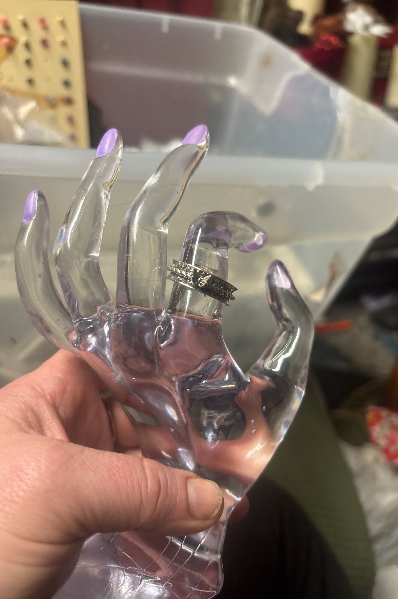 The butterfly spins around the ring and there is carvings of flowers behind the spinning and on inside graved with "do what make your soul shine".unique ring!size 7