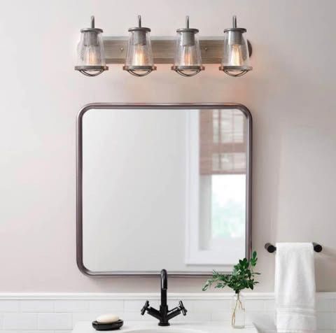 Georgina 30 in. 4-Light Weathered Iron Industrial Rustic Vanity with Clear Seeded Glass Shades and Cage Accents