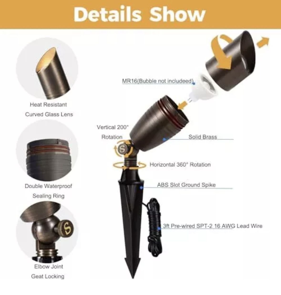 6 Brass Wired Landscape Lights Unused