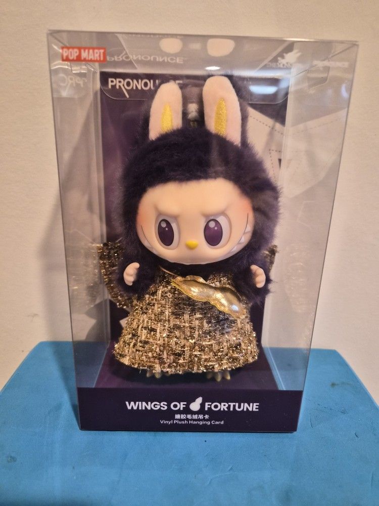 The Monsters Labubu x Pronounce, Wings of Fortune vinyl plush hanging card Purple and Gold color theme