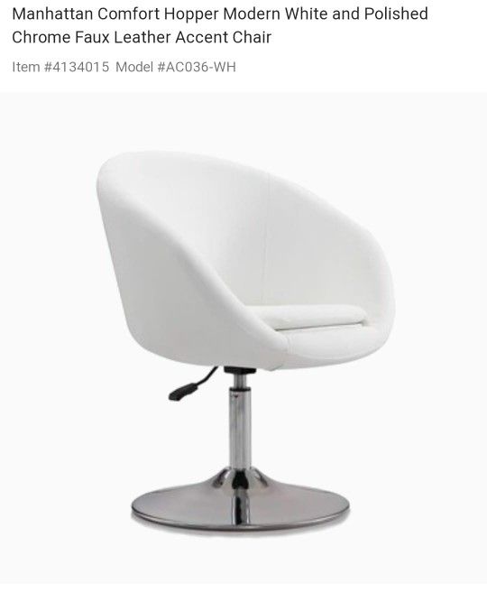 White Chrome Faux Leather Accent Chair New In Box.