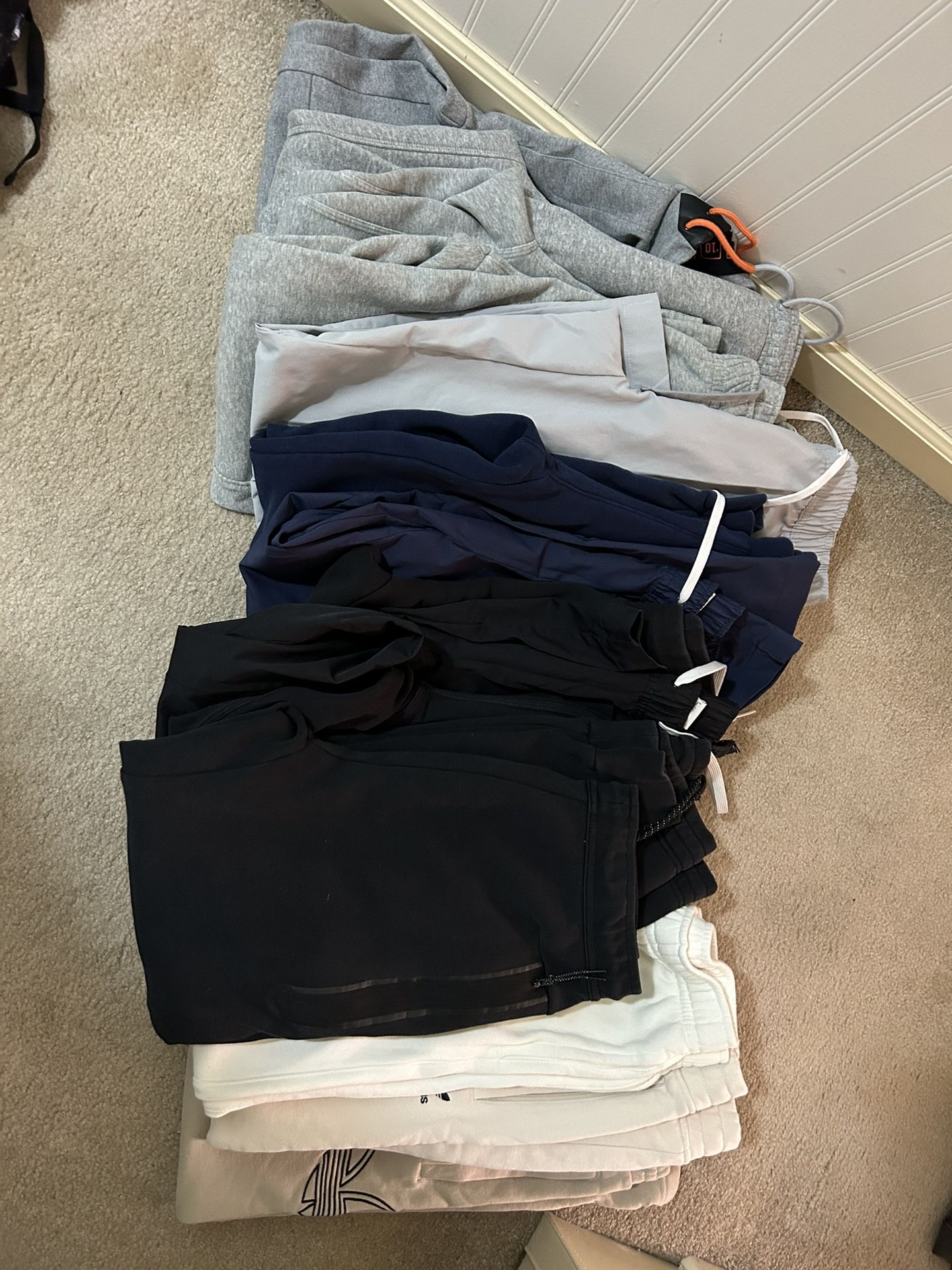 14 pairs of name brand boys sweats… Size small but could fit Youth Xl. There is even a black Nike tech pant in the bundle. All in good condition gently worn