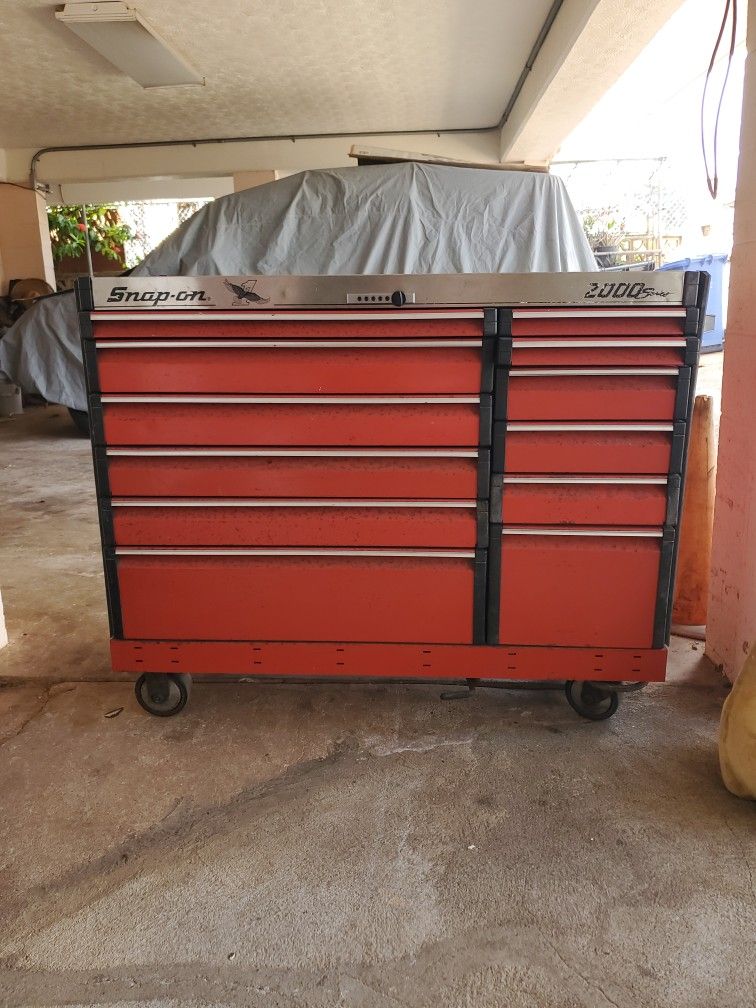 2000 series. 12 drawer toolbox with heavy duty drawer sliders and wheel casters. Keyless entry. Dont need it. Ps. Slight surface rust.