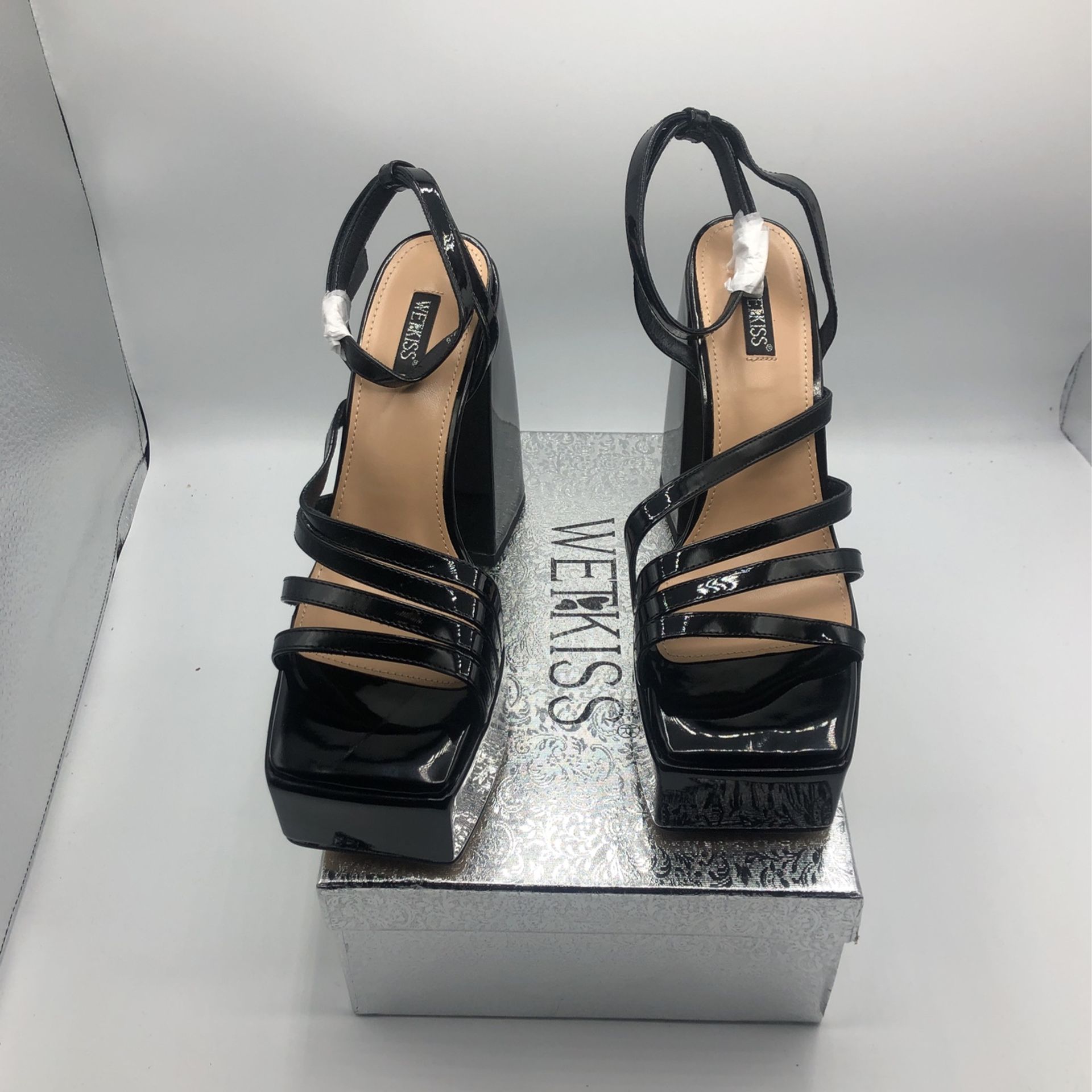 Wetkiss Platform Heels for women Chunky Heel Platform Strappy Sandals Size 9.5 US : 9.5. EU : 40. Sole Material. : Rubber. Outer Material : Patent PU Leather. Closure Type: Buckle
