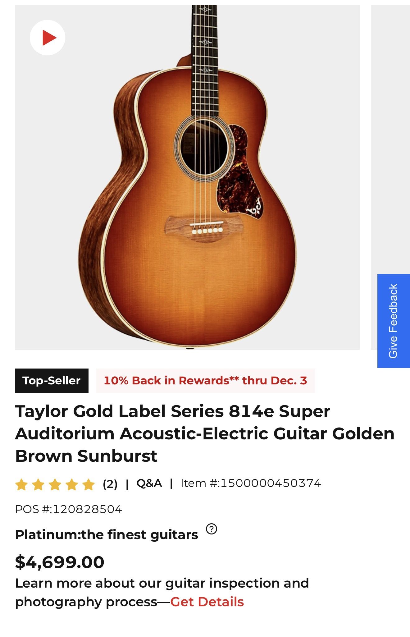 Taylor Gold Label Series 814e Super Auditorium Acoustic-Electric Guitar Golden Brown Sunburst