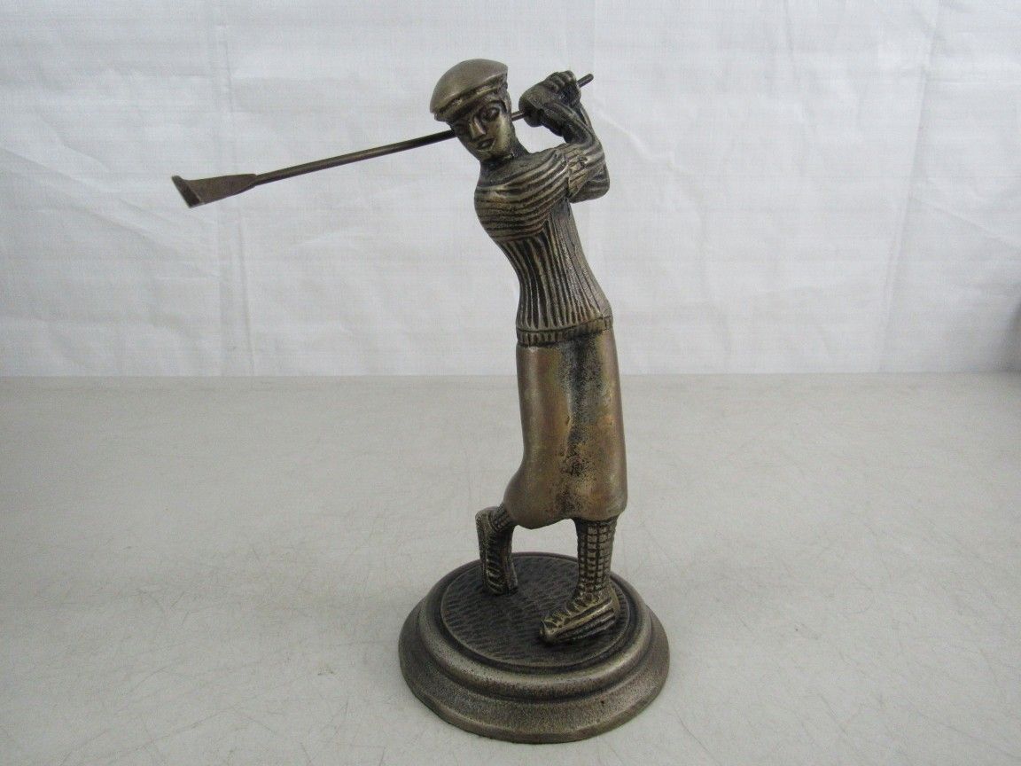 Vintage Brass Metal Golfer Statue 8 3/4" Early 1900s Attire Figurine