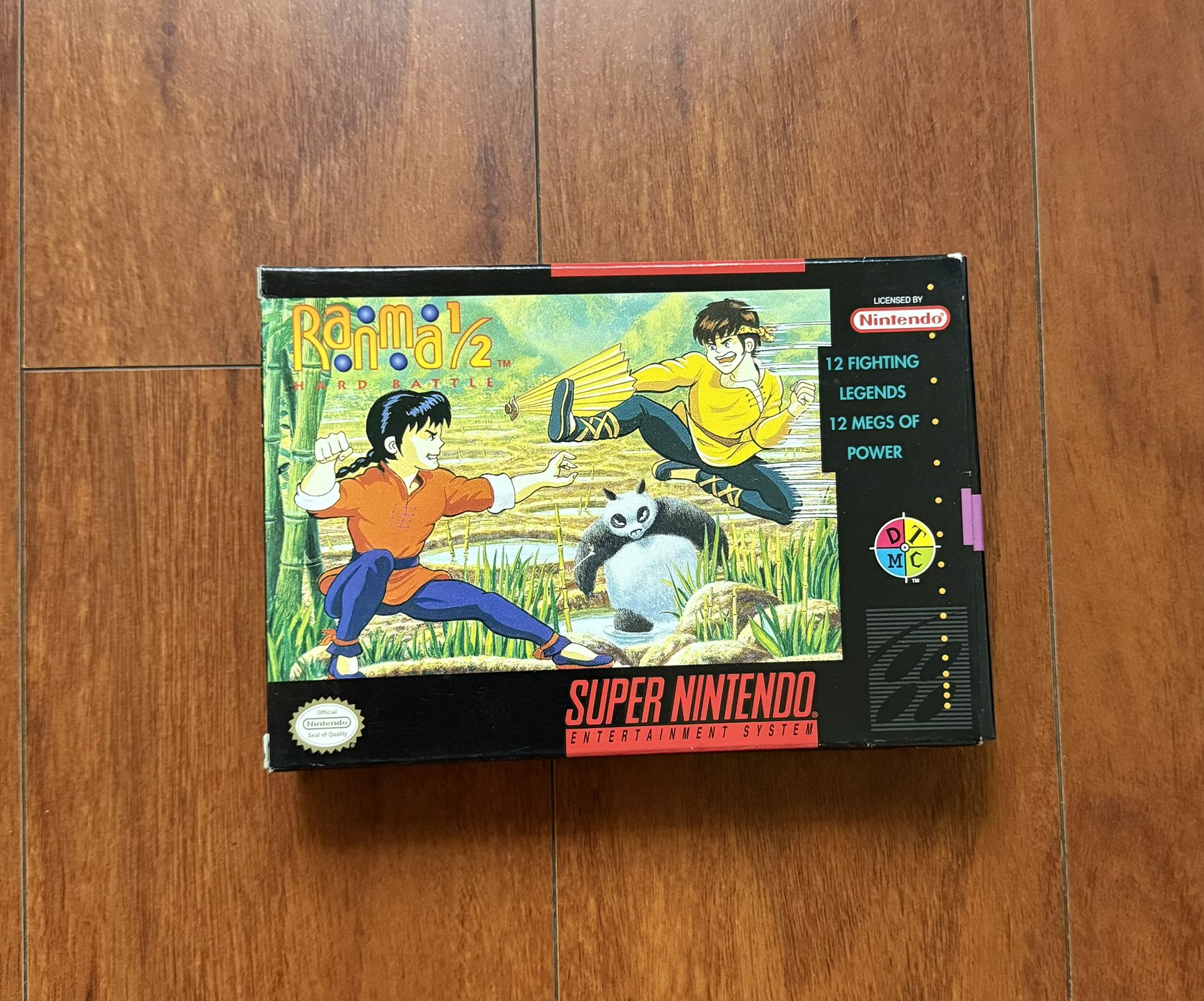 Super Nintendo - SNES RANMA 1/2 HARD BATTLE Complete with box and instructions Game cart - excellent condition. Has plastic bag cover with cart. Box - good condition. There is a light crease on the bottom of the box. There are 2 creases on the left side cardboard flaps. Please note: there is a small indent tear on the front middle cover of the box. It’s at the panda’s arm. It’s not very noticeable unless you look at the box cover art carefully. Have no idea how that happened. Actually I do remember. Remember to properly store your games! Otherwise others won’t be as careful :( Instructions - good condition. There is wear on the edges and there is a small crease at the top right of the booklet. It was well read. However, there are NO MARKS in the instruction booklet. Map - Excellent condition. Never looked or used it. Open to offers. All my games are AUTHENTIC and original and store bought. Check out my listing for more retro games. :)