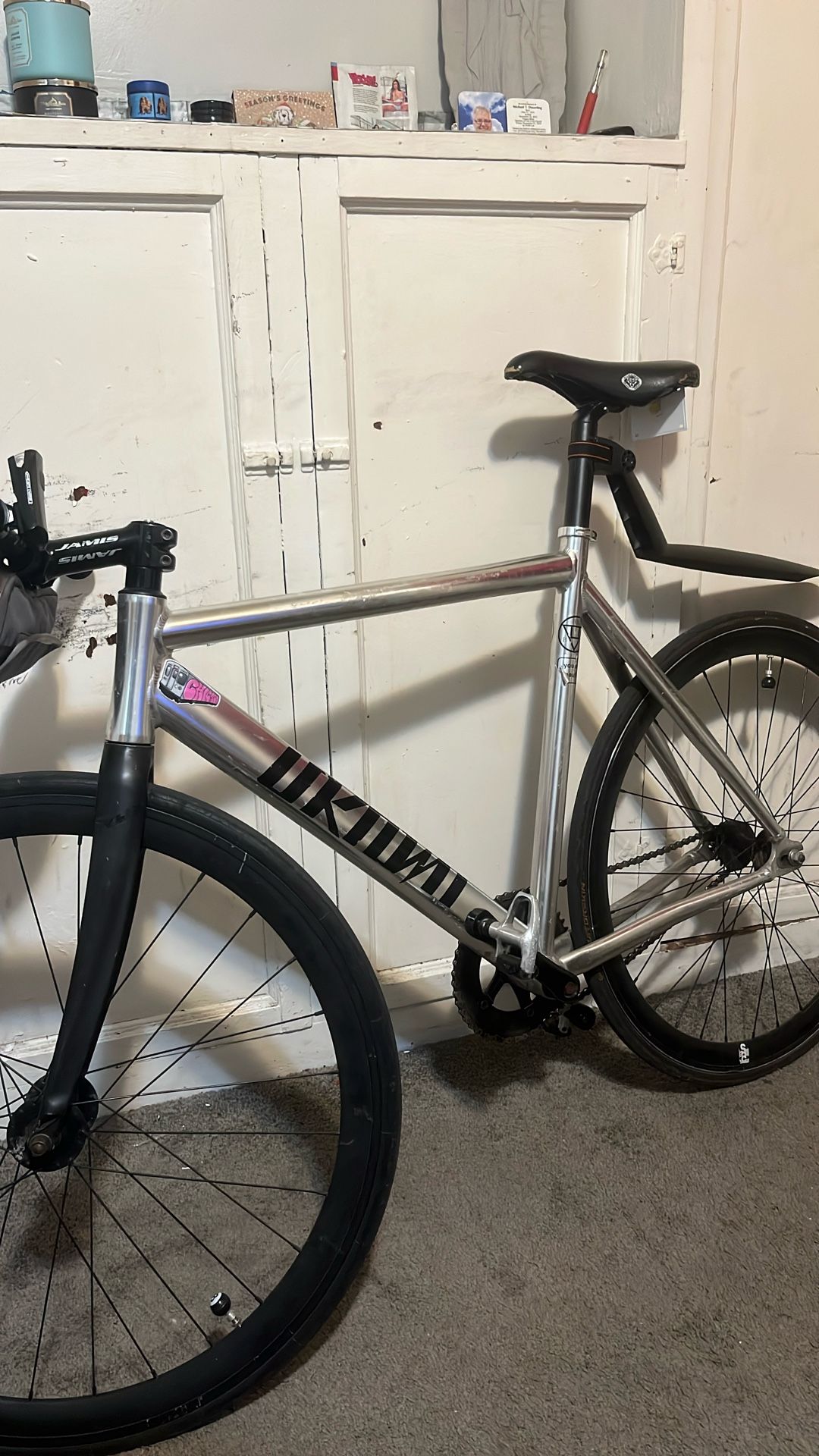 Unknown psx laced to state on rear ,regular flat bars and a Jamis stem ,fsa STEM CAP , HYLIX carbon fork, front n real wheel are both regular 6ku tires,sugino chainring got shimano spd-sl clips, not ina rush to sell just tryna see what I can get mainly lookin for cash