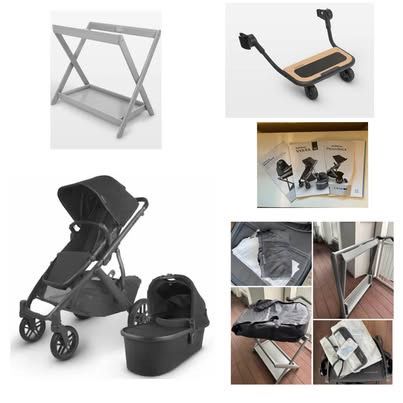 ❗️SERIOUS INQUIRIES ONLY! Please review all details before contacting❗️Thank you. ❗️Pick up in Hayward (Venmo or Cash) - SOLD AS BUNDLE !!! ✅ Used (Like-New) Condition; No tears/defects/discoloration ✅This package is a good value at $600 compared to other sellers who don't include these extras, considering the stroller's condition and type. 🛑NOTE: Stroller w/ PiggyBack attached weighs around 37 pounds, be prepared to lift and transport it to your vehicle and ensure you have enough space for all items (bassinet + bassinet-stand, in addition to the stroller) - refer to the picture of the folded stroller with the piggyback attachment ❗️This is a Vista V2 (not a Cruz V2); it can convert from a single to a double (or triple with a ride-along piggyboard) for growing families, while Cruz is not convertible & strictly a single stroller ❗️ ^^^^^^^^^^^^^^^^^^^^^^^^^^^ ADDITIONAL DETAILS for what’s included in the Bundle (below): ➡️(1) Stroller & Bassinet (Jake - Black) - Org. $999.99 + tax ➕1 UPPAbaby Bassinet Storage/Travel Bag✳️ ➕1 UPPAbaby Unused Bassinet Bug Shield 🦟 ➕1 UPPAbaby Unused Toddler-Seat Bug Shield (for Stroller) 🦟 ➕1 UPPAbaby Unused Toddler-Seat Rain Shield (for Stroller)☔️ ➡️1 Universal 2-in-1 Cup & Phone holder for Stroller - Org. $9.98 + tax ➡️1 UPPAbaby Bassinet Stand (GREY) - Org. $199.99 + tax ➡️ 1 UPPAbaby VISTA V2 PiggyBack Ride-Along Board - Org. $179.99 + tax ➡️ Following Owner’s Manual (Instructions) Included: - for Stroller & Bassinet - for Bassinet Stand - for PiggyBack