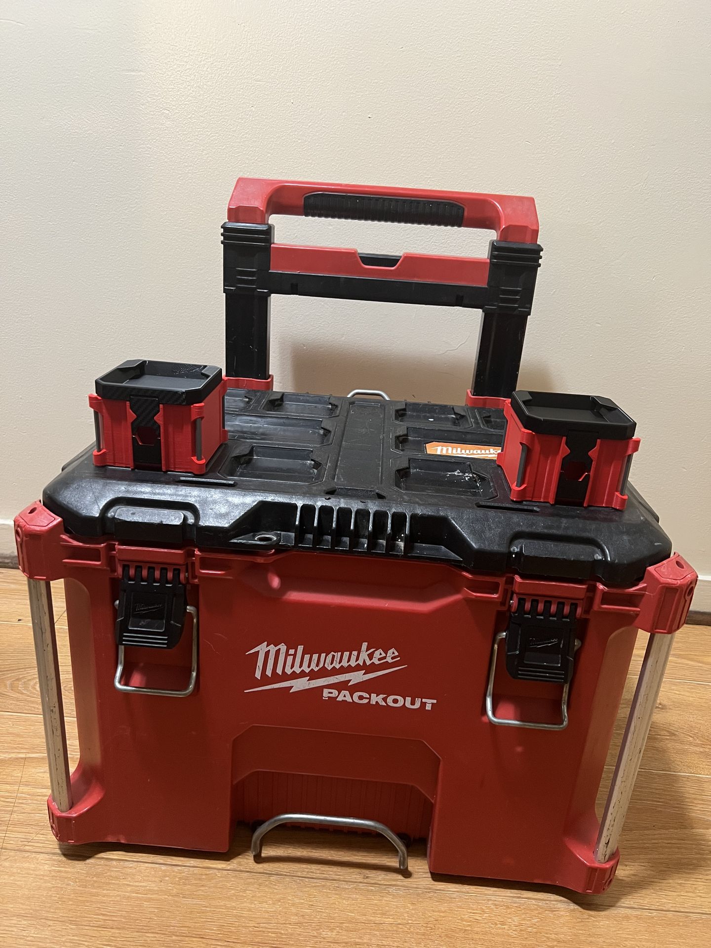 Selling this Milwaukee pack out with two mini pack out containers. It also has to tray that goes inside of the pack out.