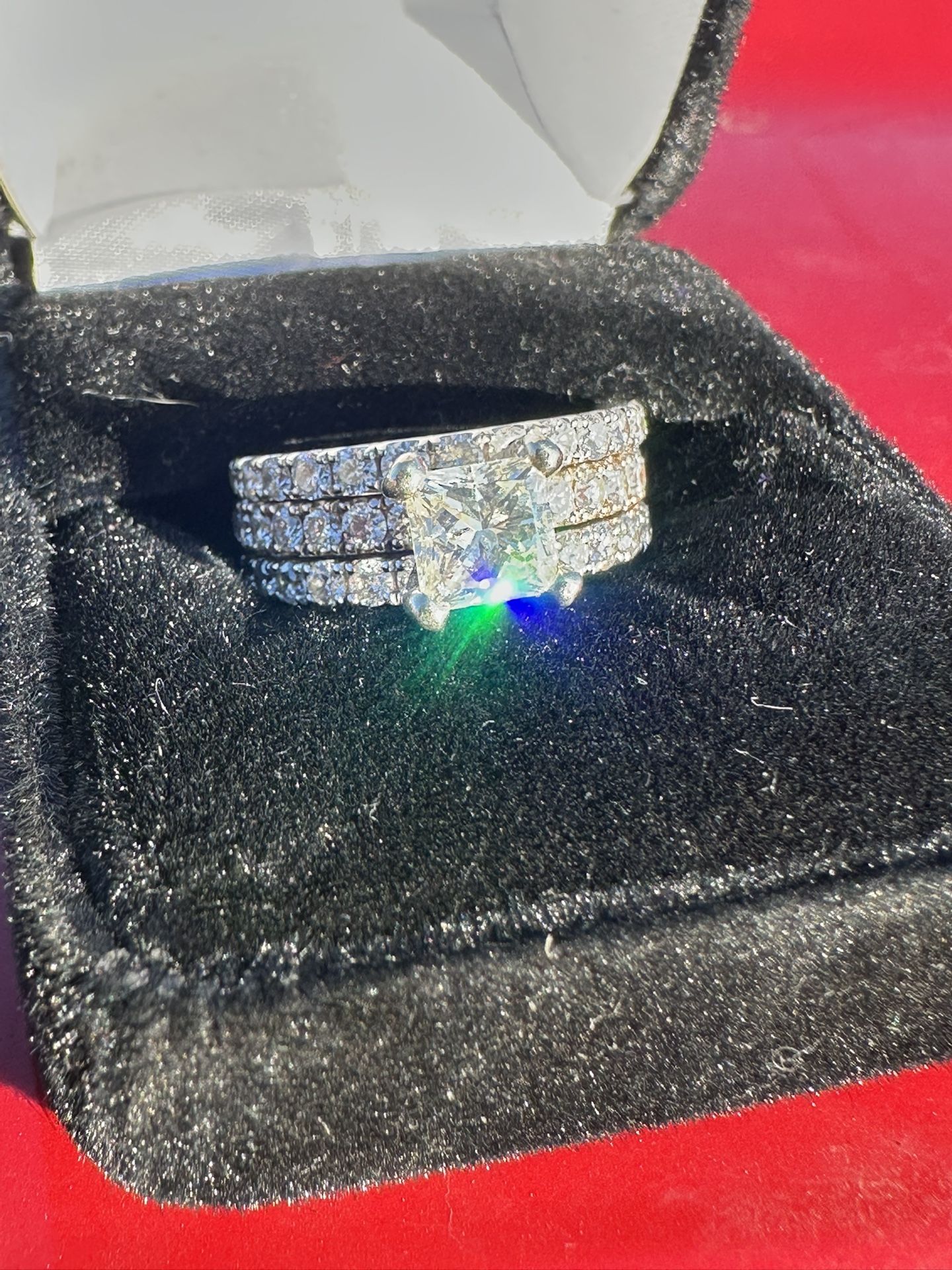 Beautiful wedding ring lots invested all natural princess cut 3.5tk big diamond is 1.1 karats itself this ring was built to shine pictures don’t really show how beautiful it is in person 6k obo ring is basically brand new just built years ago