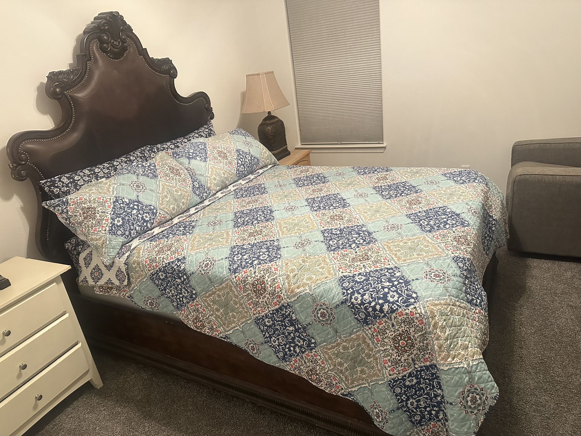 This bed is gorgeous and awesome quality. It will last centuries. The wood is pretty heavy due to the excellent quality. It is upholstered with leather. The bottom appears wet but it is not. It comes with the mattress if desired.