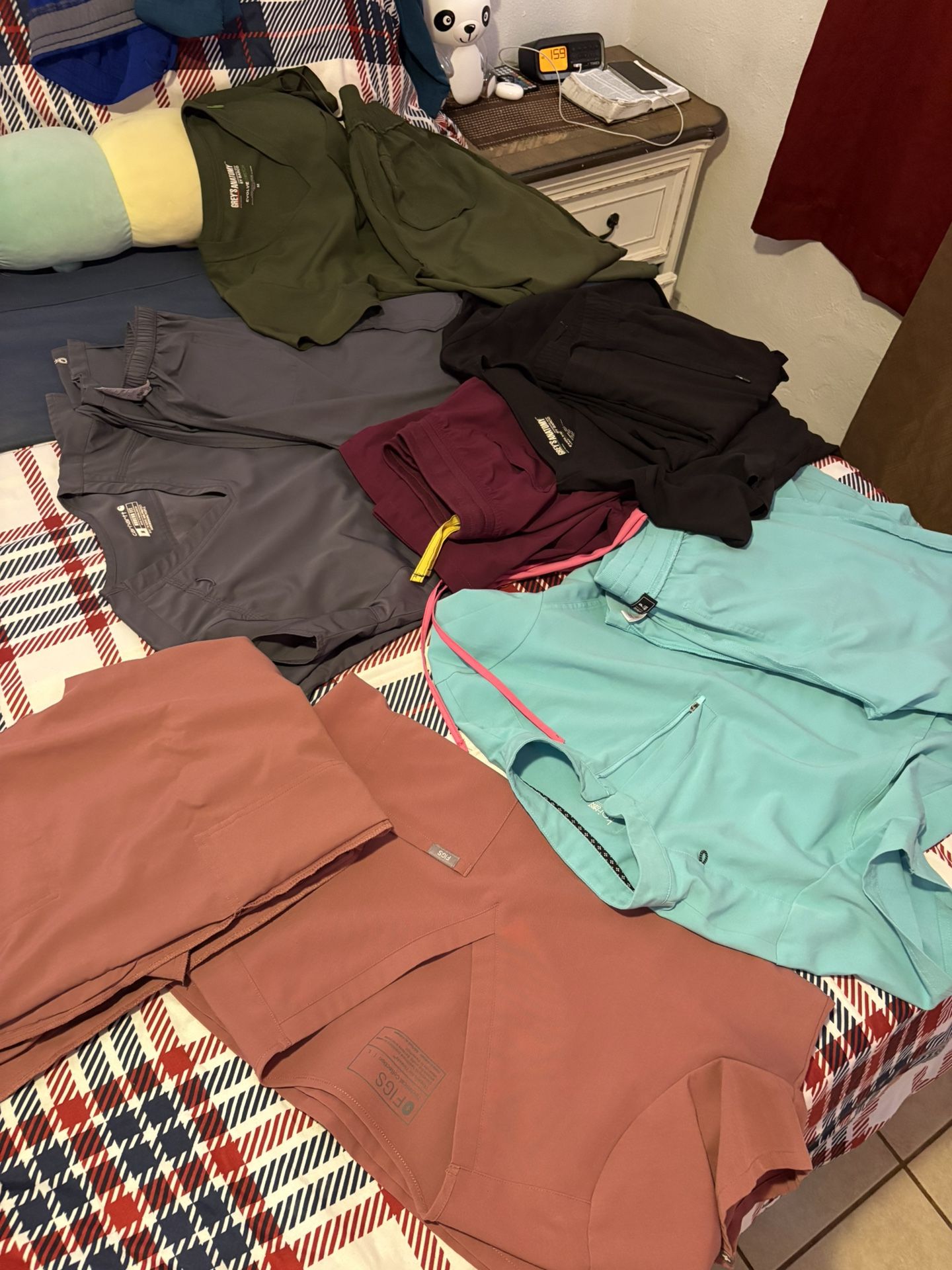Pink -Large light blue -Small Black…gray..Green …blue green are size Medium