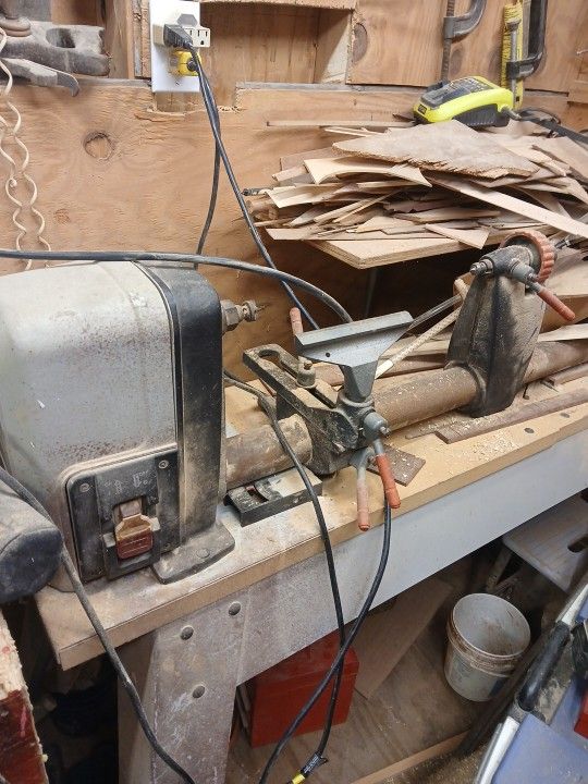 Heavy-duty bench-top wood lathe in solid working condition. Cast iron bed, smooth operation, and solid construction. Great for spindle turning, small bowls, and hobby projects. Includes: Tool rest Tailstock with live center Headstock spur center On/off switch works properly