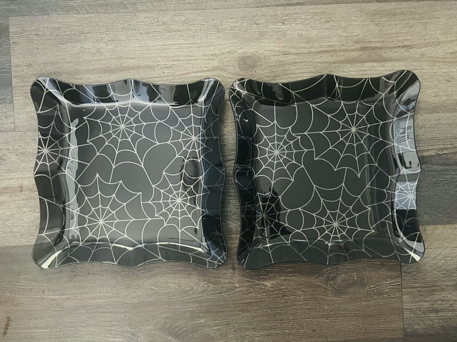 HALLOWEEN-Set of 2 Black/White Spider Web Trays/Plates