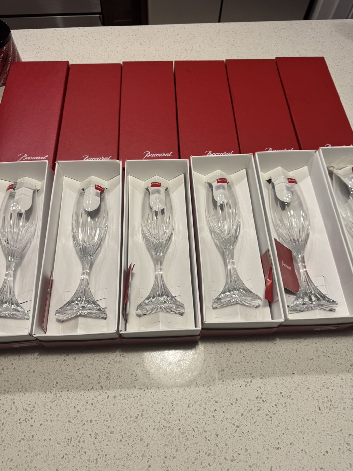 Baccarat Massena Champagne Flutes NIB Retail $530 per Pair, Best Offer (6 available) $500 per pair - $1500 for set - cash is king.