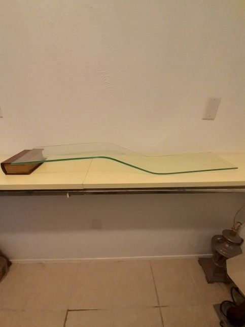 Wavy Glass Wall Shelf made of sturdy, beautiful, green-hued, 1/4" beveled glass. Comes complete with two decorative wall anchors. Shelf is perfect for books, small plants, picture frames, or collectibles. Approximately 40"L x 8"W. 💵 Cash Only 🏡 Porch Pick Up 📵 NO Zelle or Venmo! ✅ Check out my other great deals!
