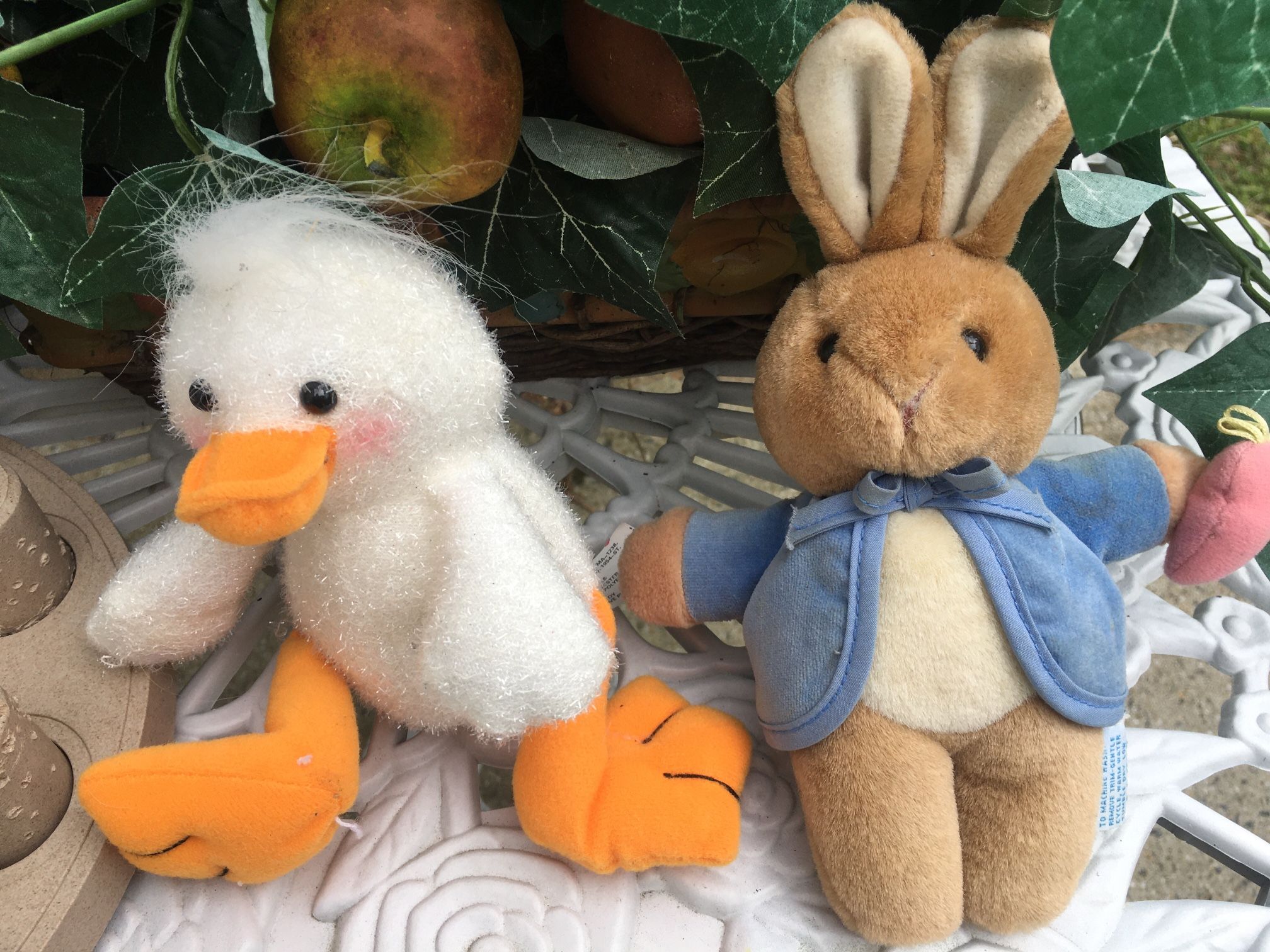 Peter rabbit from Nordstrom $7. Duck, lion, tiger or bunnie $4 each.