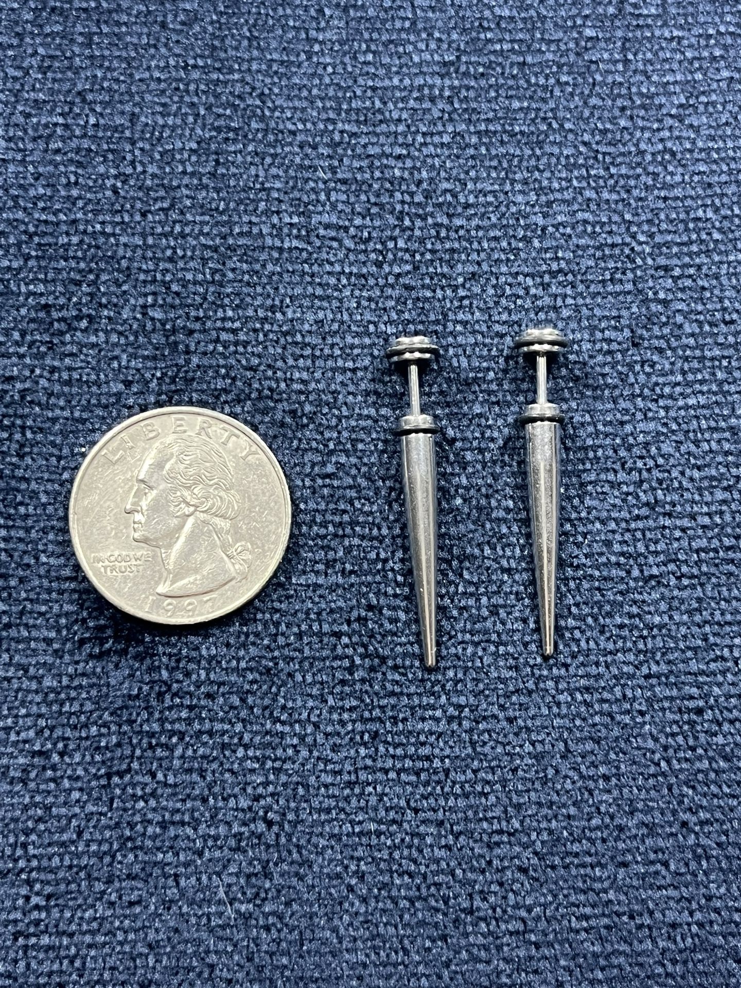 Taper style faux plugs/gauges. Metal (silver) with black silicon bands. Available to for shipping or local pickup.