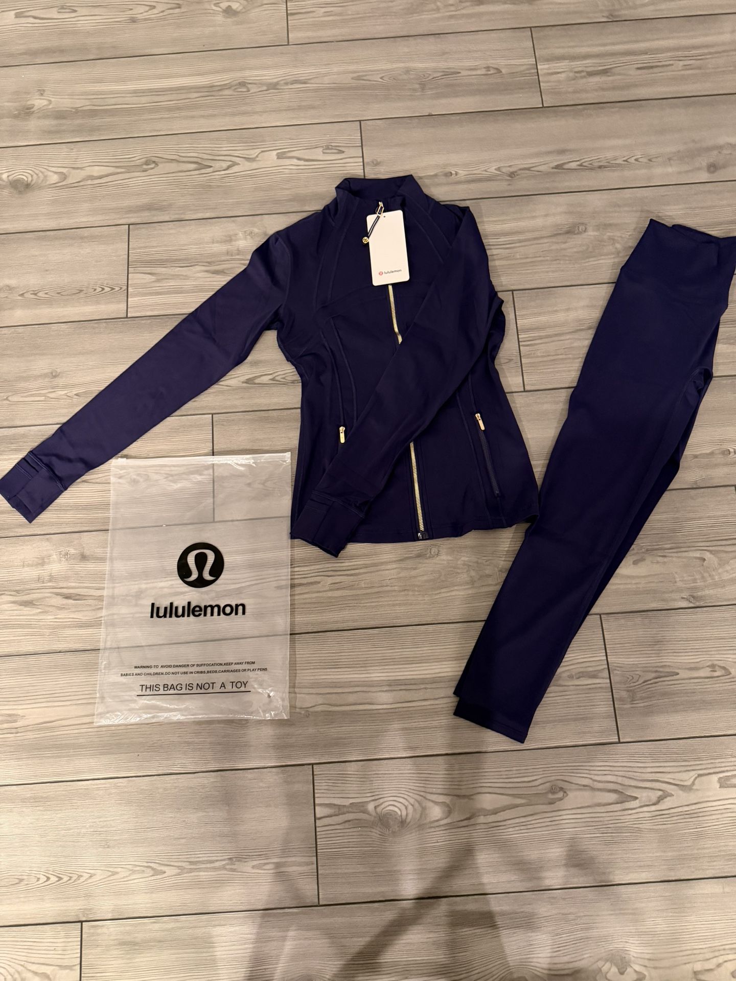 Lululemon navy blue Gold Zip Speed Up jacket and Align leggings size 6 #lululemon #activewear