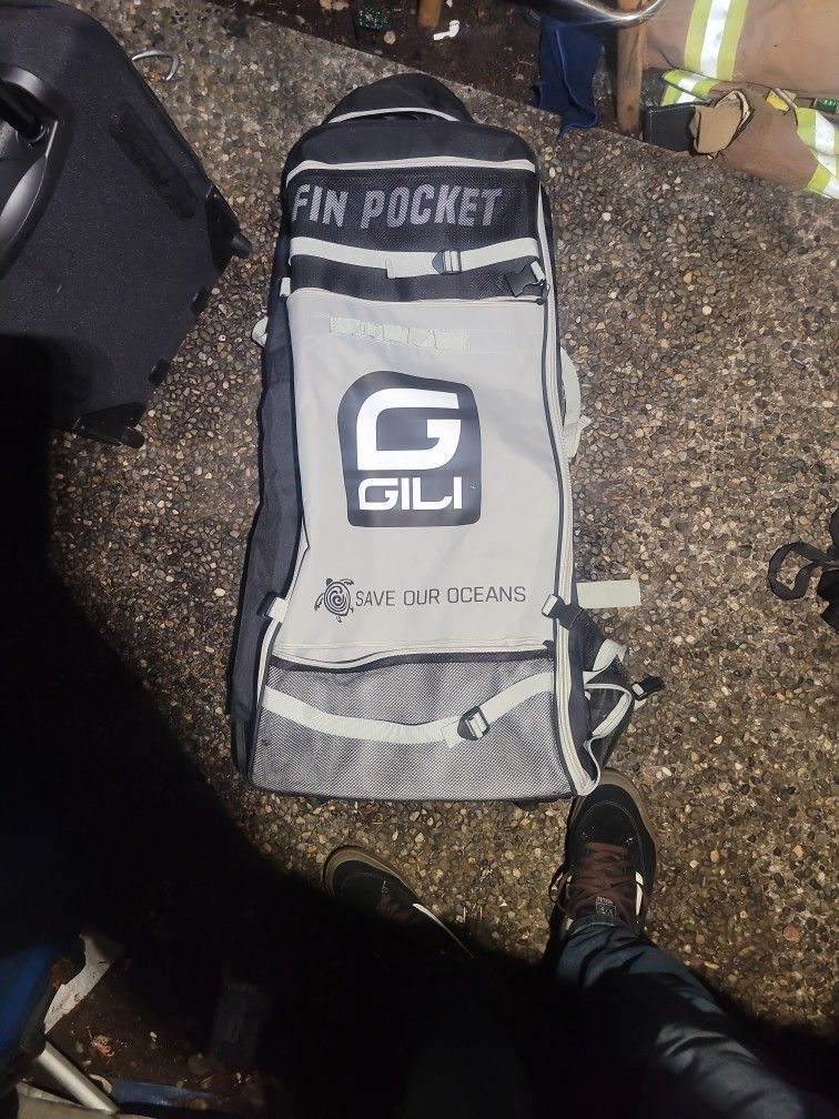 Features & Specs: Dimensions: 36 inches x 14 inches x 12 inches Materials: Heavy duty nylon Heavy duty wheels Built in padded shoulder and waist straps The GILI Inflatable SUP Rolling Backpack fits all of our inflatable paddle boards. We've built in padded shoulder and waist straps so carrying your iSUP and gear has never been more comfortable. You can store your paddle, pump, or wet gear in the outer mesh pocket, and there is ample room in the bag for your leash, pump, paddle, fin and more. We love using this bag when transporting our iSUPs - it's even ideal for airplanes! Made from heavy duty Nylon, this bag is built to last! Brand new