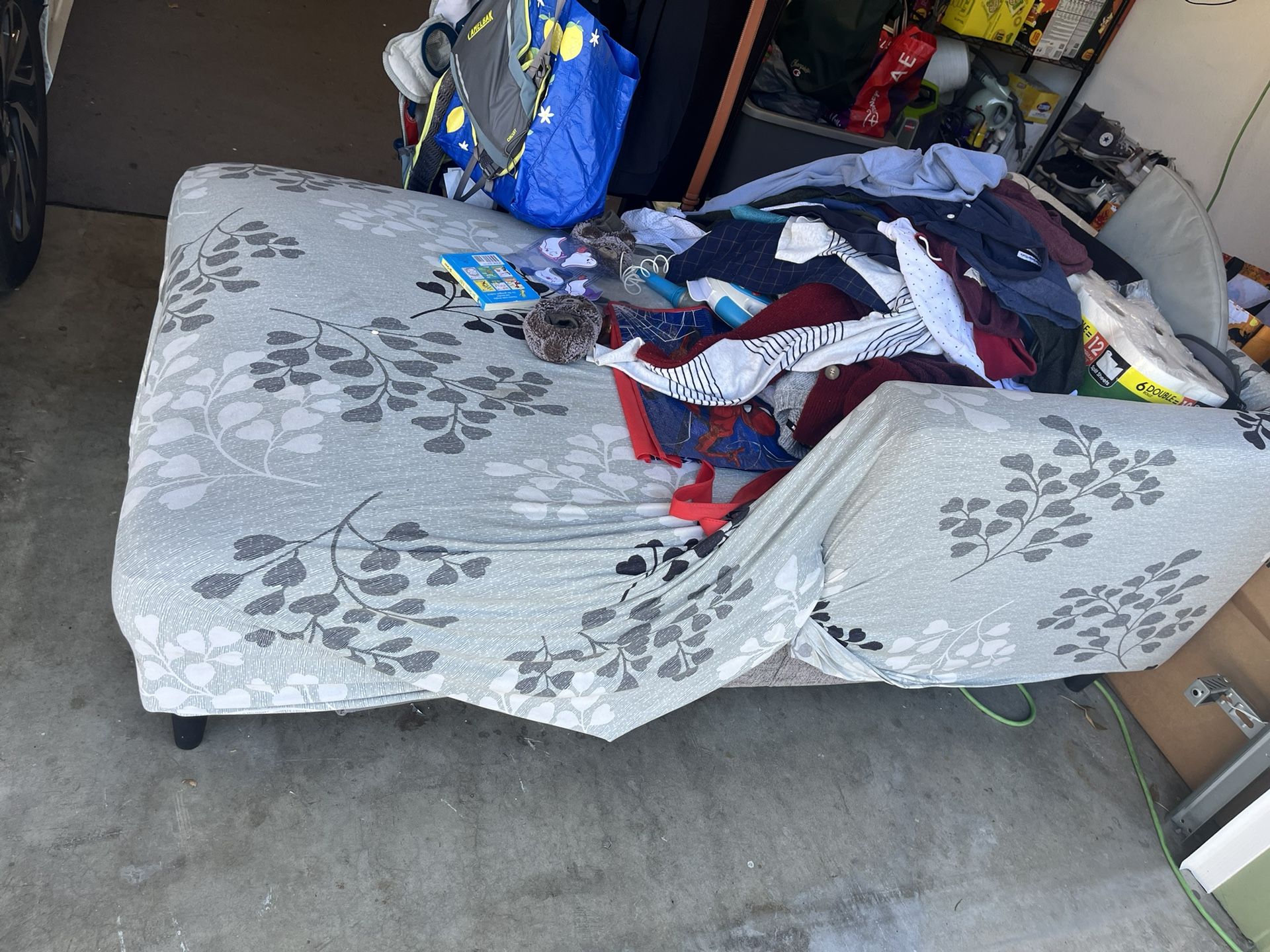 It comes with no pillows. Can buy some from Amazon. The flower piece is a cover sheet. Couch originally from Ashley’s furniture. Still has cushion just no pillows to it