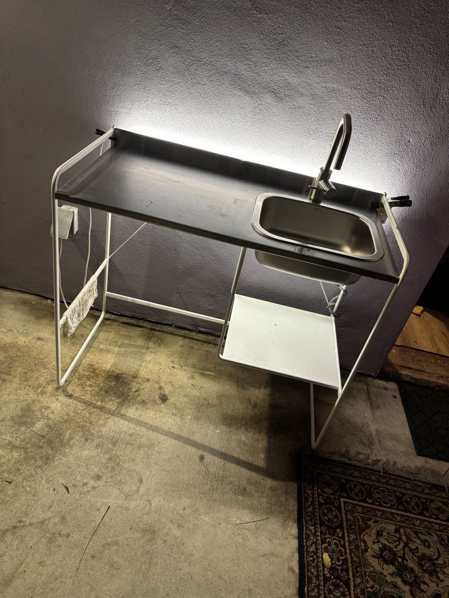 Perfect weight and size to have on your fishing boat to clean and prep food, poolside for summer fun , even a mobile food truck might find this station handy. Still unused , brand new ! Never had a chance to install it at my apartment before I relocated I no longer have the room for it in my new spot.