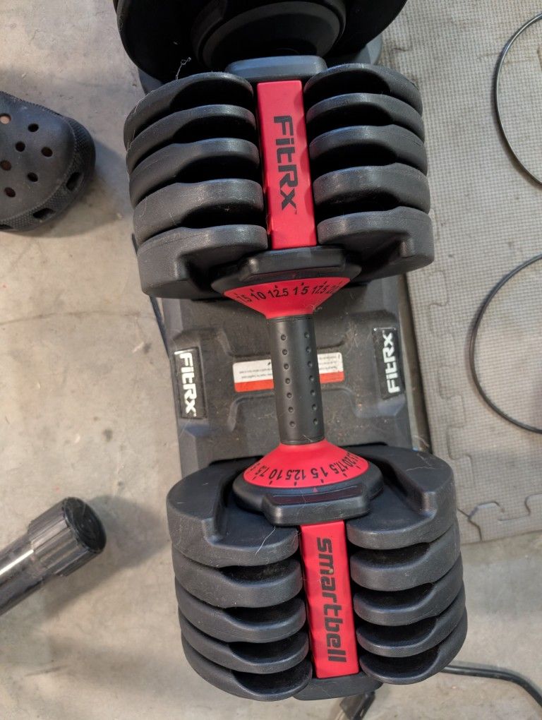 Used 2 dumbell weights 1 needs a handle replacement (can be ordered on their website below) FitRx SmartBell Handle - FitRx™ https://offerup.com/redirect/?o=aHR0cHM6Ly9zaGFyZS5nb29nbGUvS0FET0dwVWhFa2o2R1RrMEo=