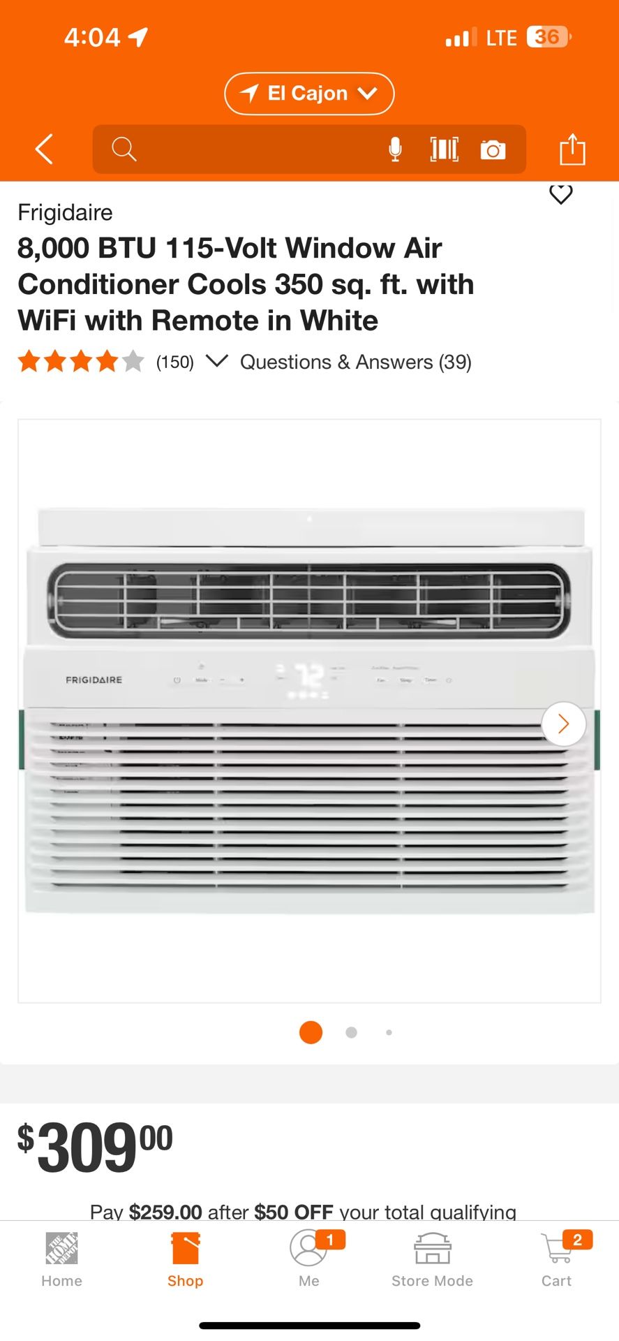 Frigidaire 8,000 BTU 115-Volt Window Air Conditioner Cools 350 sq. ft. with WiFi with Remote in White