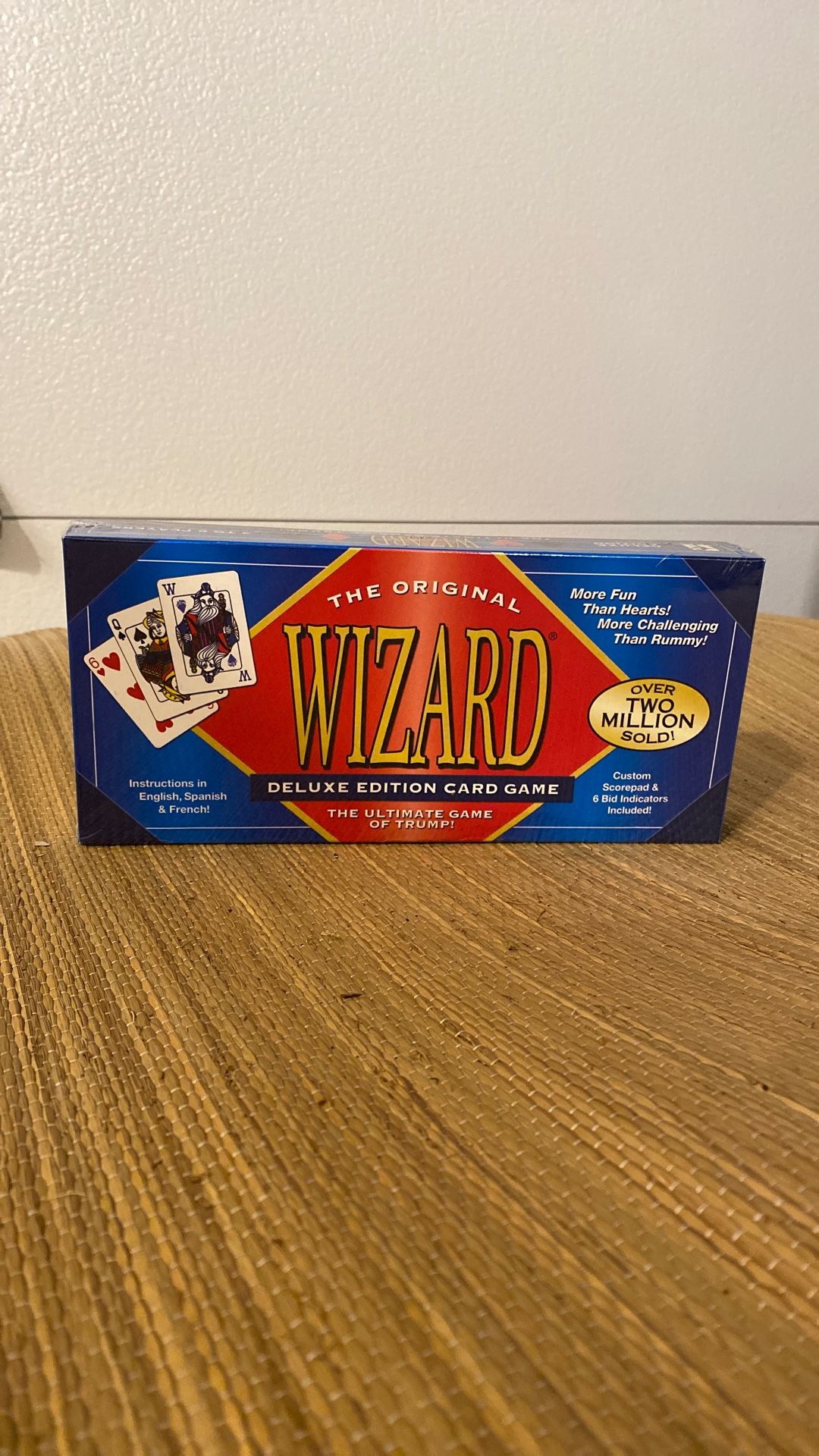 brand new original wizard card game deluxe edition- 3-6 players - super fun game! comes with •1 deck of 60 wizard playing cards •score-pad •tri-lingual instructions •6 bid indicator wheels Check out my page for more goods! ☺️