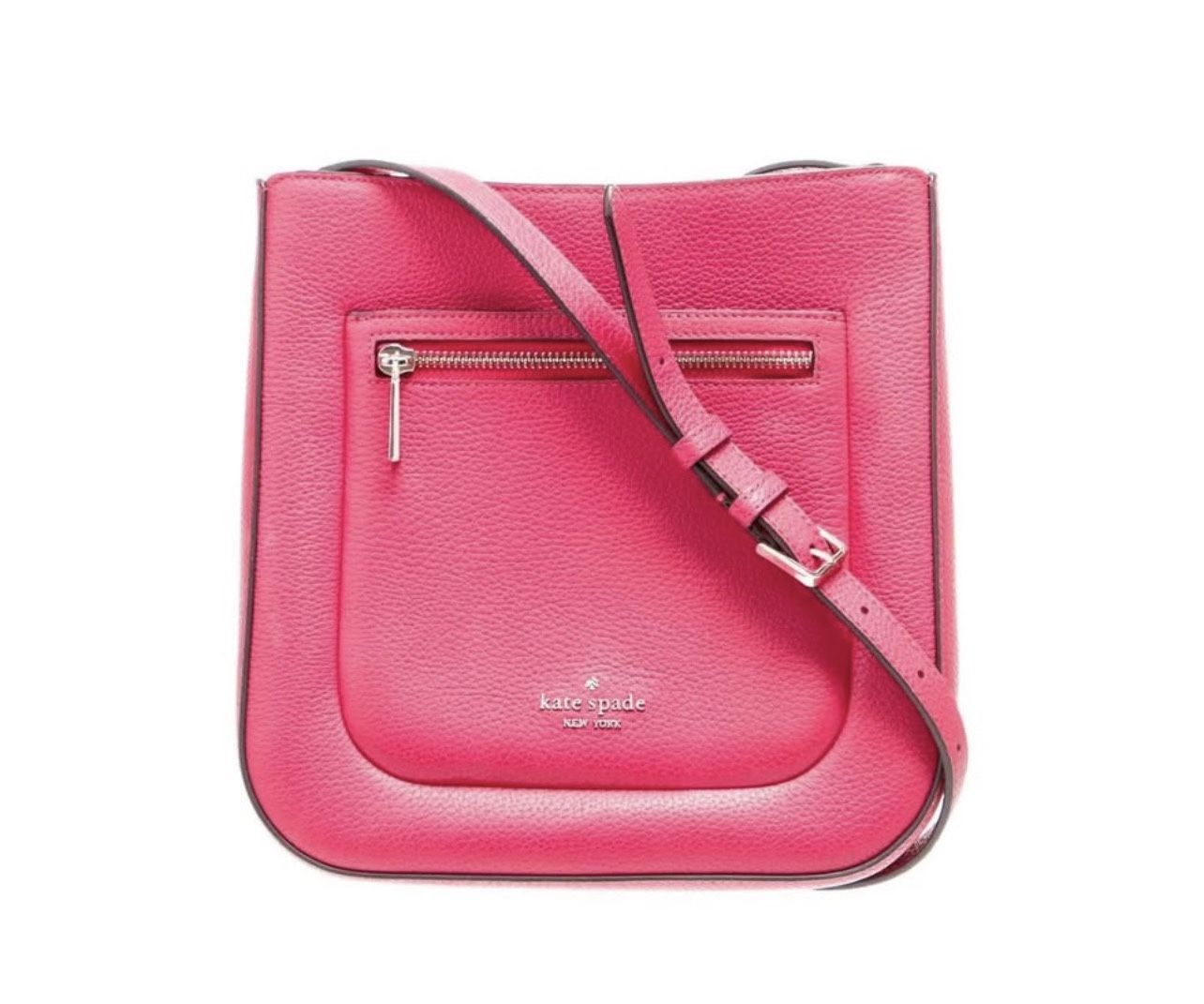 In excellent condition Description * Kate Spade New York Crossbody Bag * Pink Leather * Gold-Tone Hardware * Single Adjustable Shoulder Strap * Dual Exterior Pockets * Logo Jacquard Lining & Dual Interior Pockets * Zip Closure at Top Estimated item measurements * Shoulder Strap Drop Min: 20.5" * Height: 9.75" * Width: 10" * Depth: 2” Paid $279 Asking $70 OBO