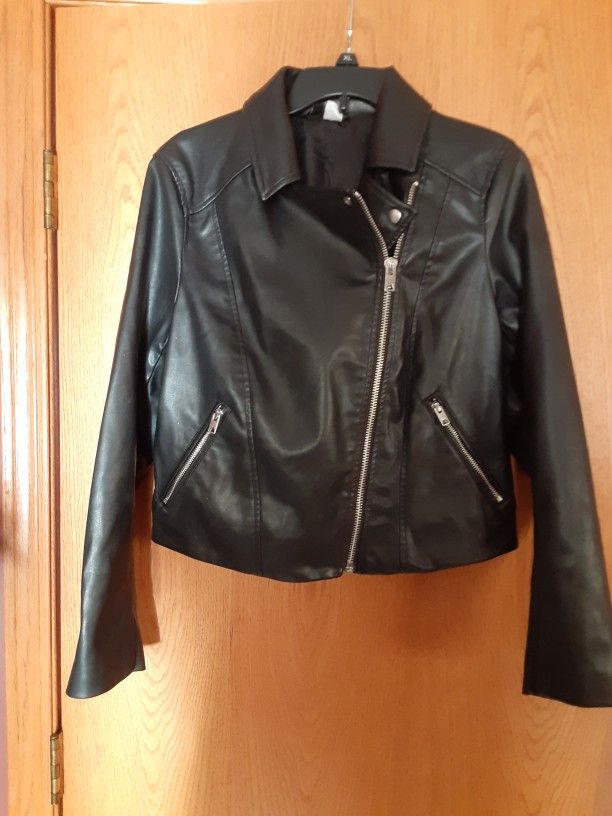 Womens size medium, Divided faux leather jacket. Beautiful design. Good Condition