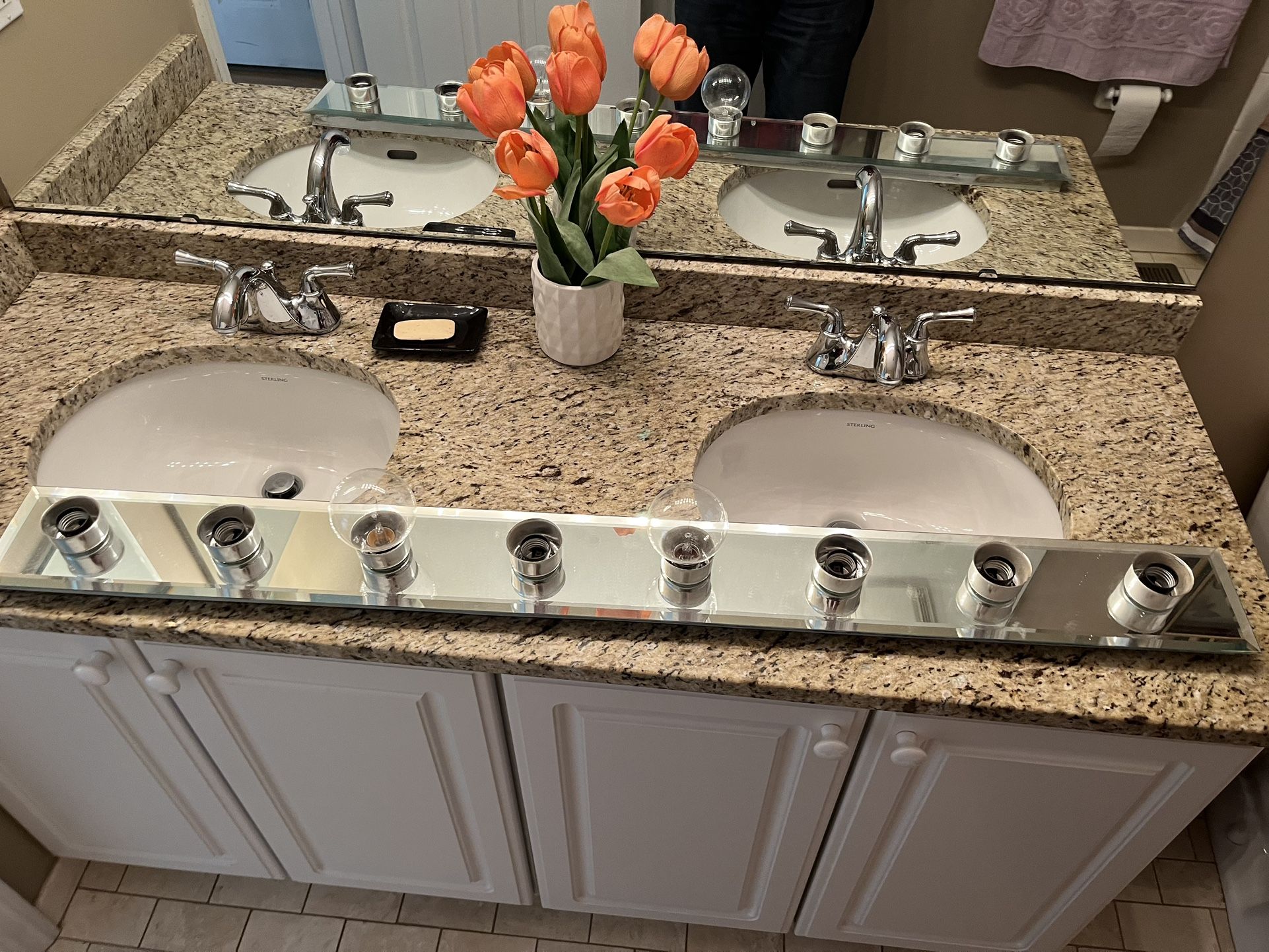 8 bulb (200 watt max) vanity light in chrome with beveled mirror. Bulbs not included.